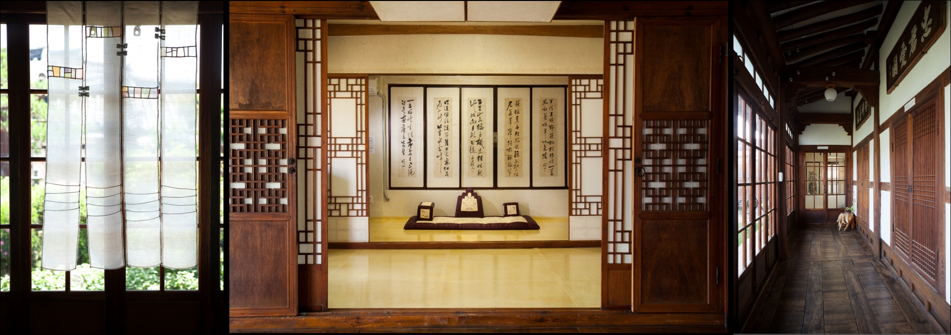 Jeonju Hanok village is especially beautiful for its roof curves. The roof edges being slightly raised to the sky is unique. Hanok houses are generally divided into two sections, Anchae and Sarangchae. Anchae is also known as Gyusu room, and is furnished accordingly. Sarangchae is where the men dwell, and is referred to as the Seonbi room. Because men and women have to remain separate, Anchae is situated deep inside the house so that it is secretive and quiet.