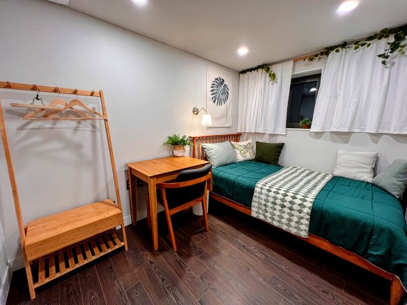 This is accommodation in a newly built villa with pretty red brick on a hill overlooking old Heukseok (meaning black stone) neighborhood. Enjoy a relaxing space decorated in green them and biophilic style using natural wood.