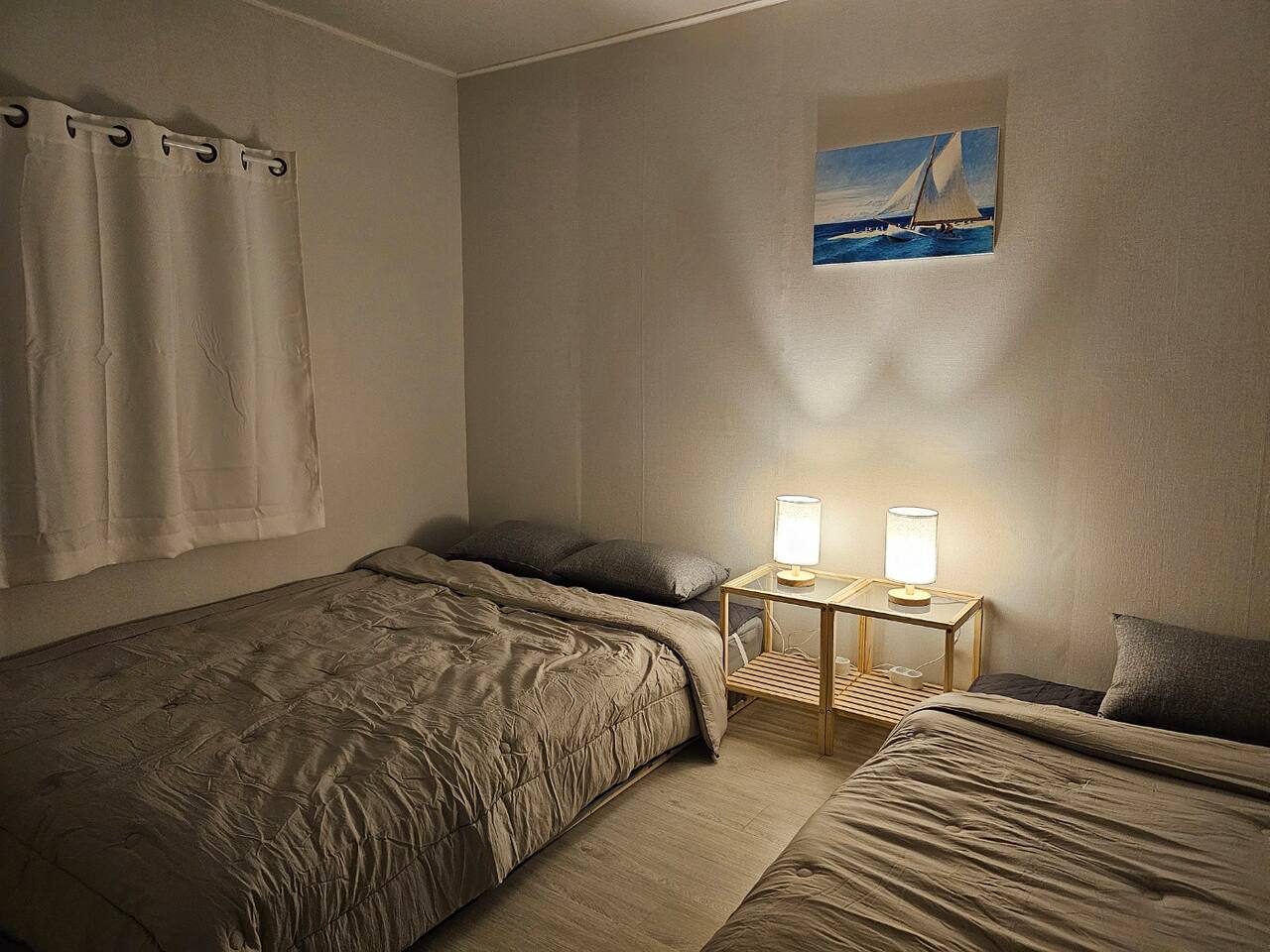 방1 : 퀸사이즈 베드 1 + 슈퍼싱글사이즈 베즈1
