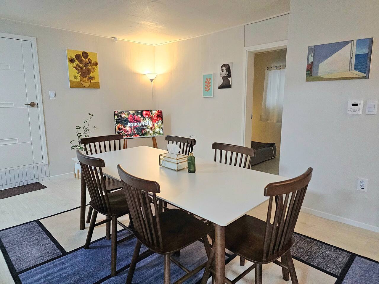거실: 6인 테이블 + 스마트 티비