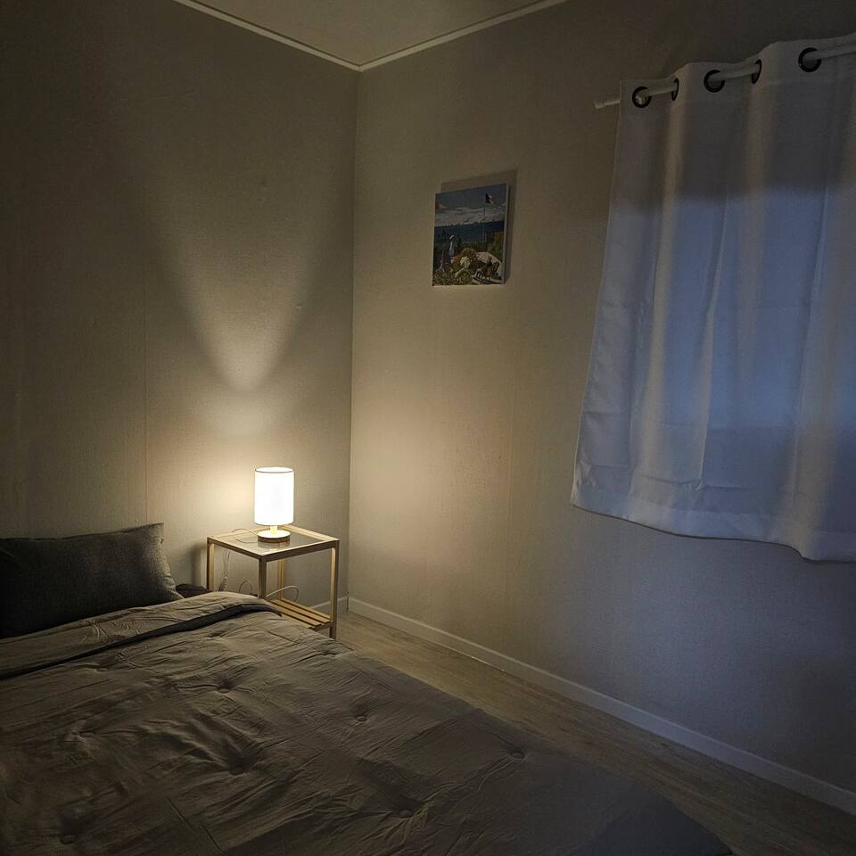집은 이번에 새롭게 리모델링하여 깨끗하고 아늑한 분위기를 주며 침실 3개, 욕실 1개, 거실과 주방으로 이루어져 있습니다. 침대는 총 퀸사이즈 3개와 슈퍼싱글 1개가 있습니다.
