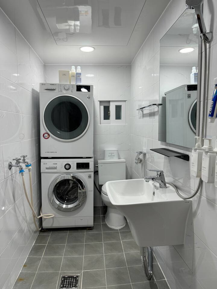 이틀 머물렀는데 세탁기 건조기도 있어서 장기간 머물러도 좋겠다고 생각했습니다.