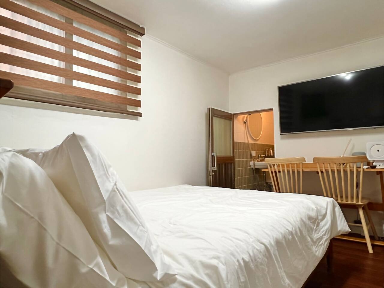민지 김서울에 잠깐 머물일이 있어서 왔는데 가격도 너무 착하고 깨끗해서 마음에 들었습니다. 주차는 저희가 체크인을 늦게해서 북아현문화센터에 못하고 바로 근처에 공영주차장에서 했구요. 숙소 찾기는 쉬웠습니다. 번화가가 아니라서 조용했구요. 저희 방은 작지만 있을거 다 갖춰져있고 리모델링을 해서인지 아주 깔끔하고 숙소도 에어컨트니 시원하고 다 좋았습니다.Aug 2024