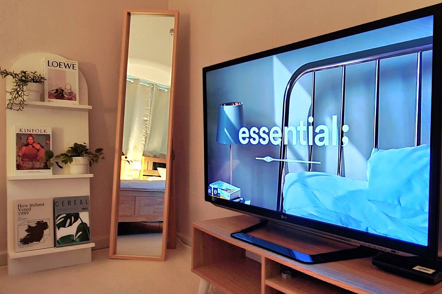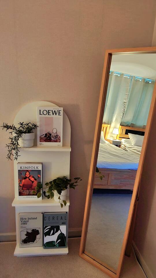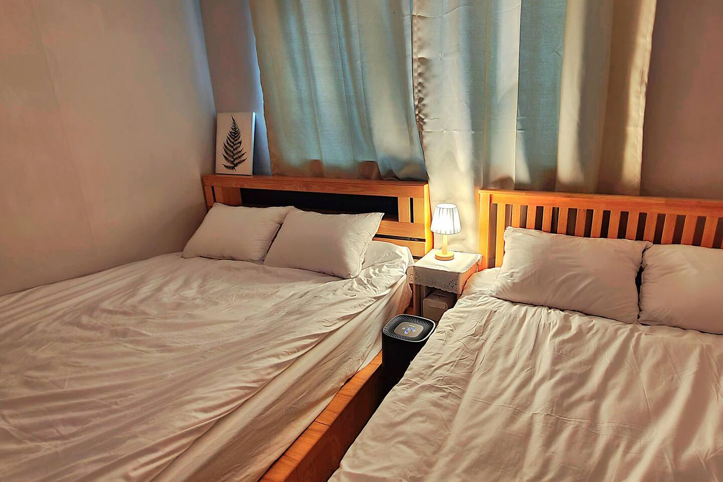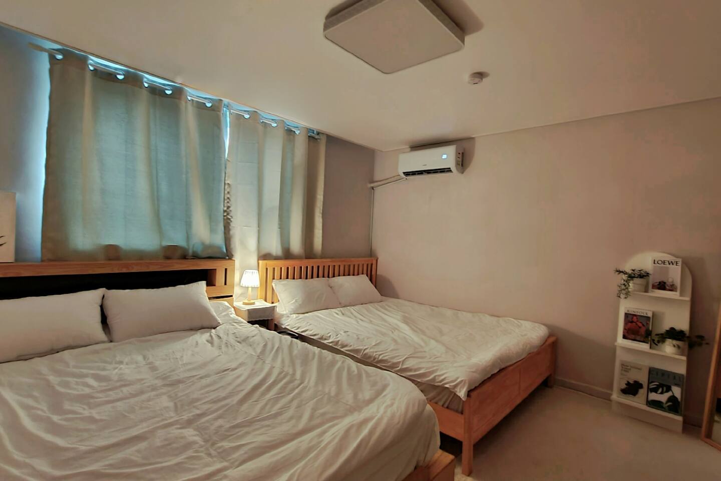 침실1: 퀸사이즈 침대2, 에어컨, TV, 온수 및 난방조절 보일러, 공기청정기, 전신거울, 선반