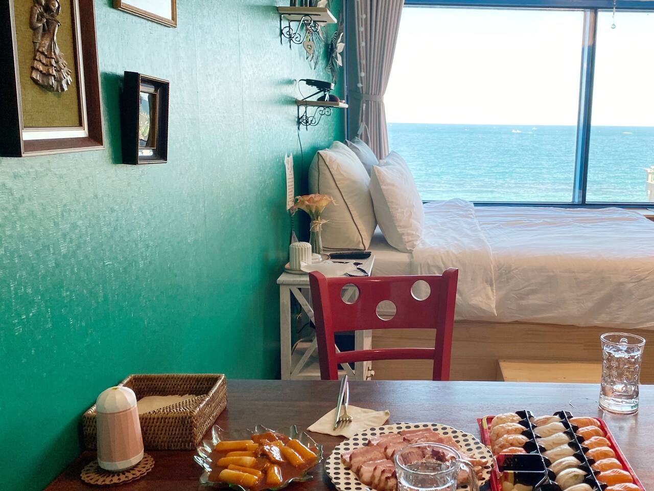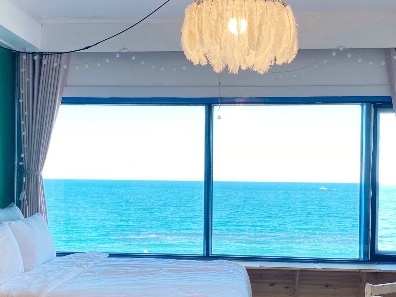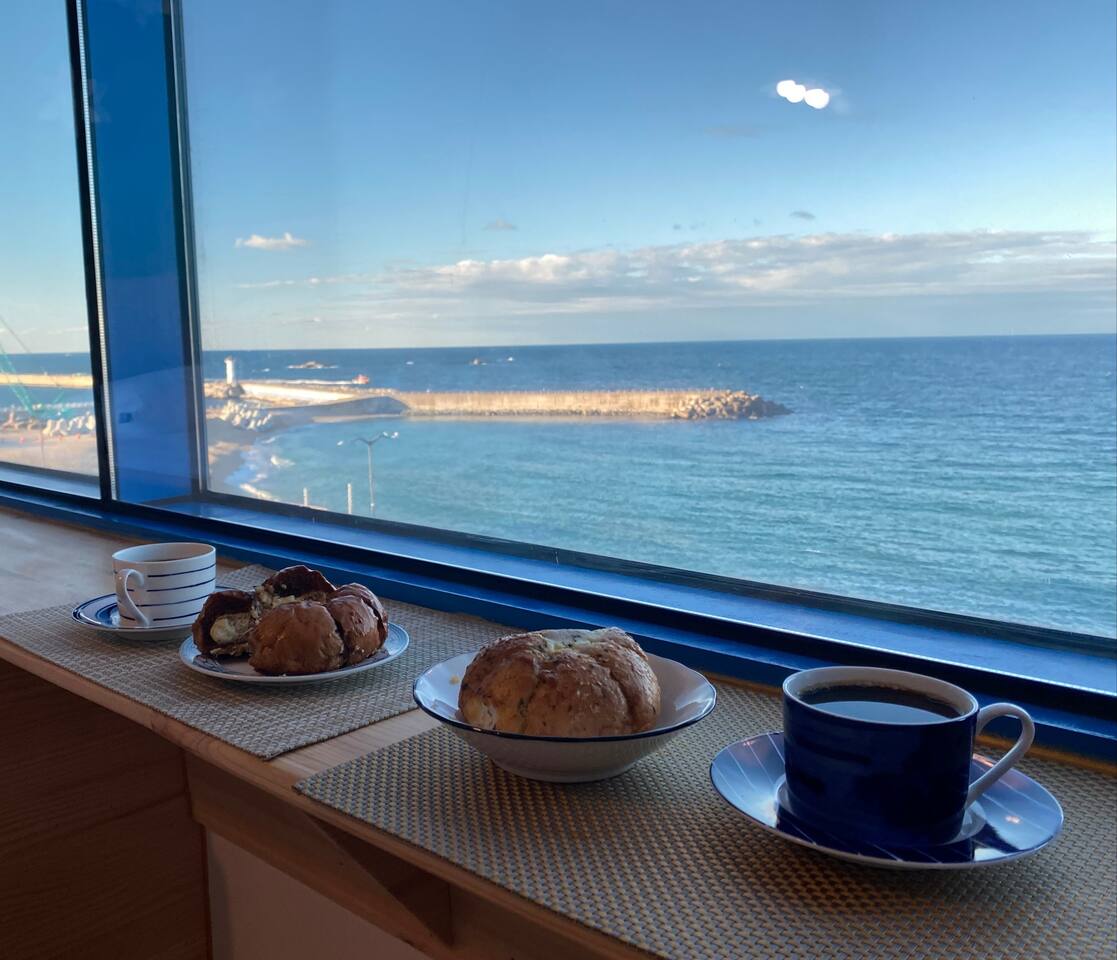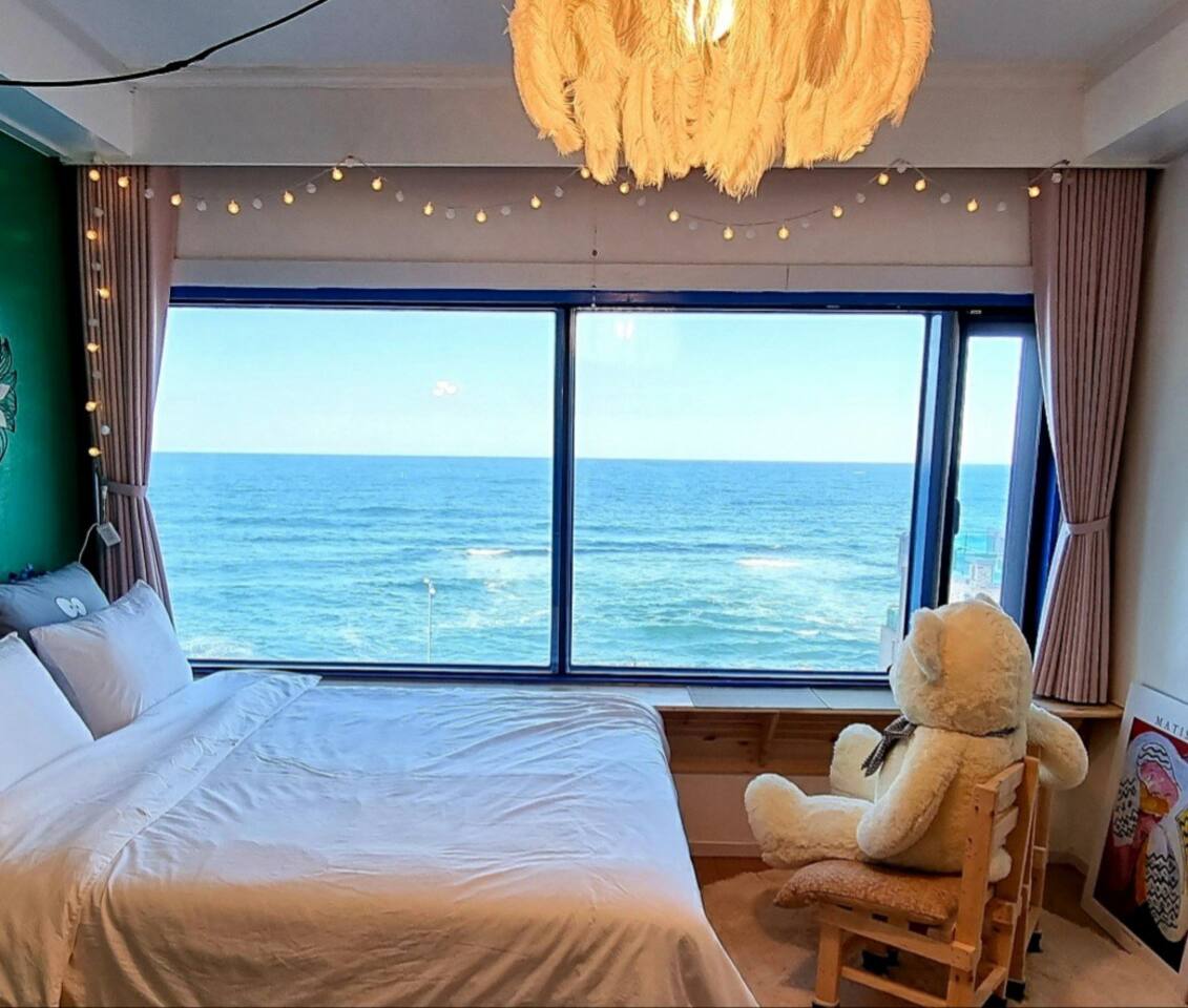 ?️직접 제작한 유니크한 침대와 창가 티 테이블을 통해 멋진 동해바다를 감상하세요.