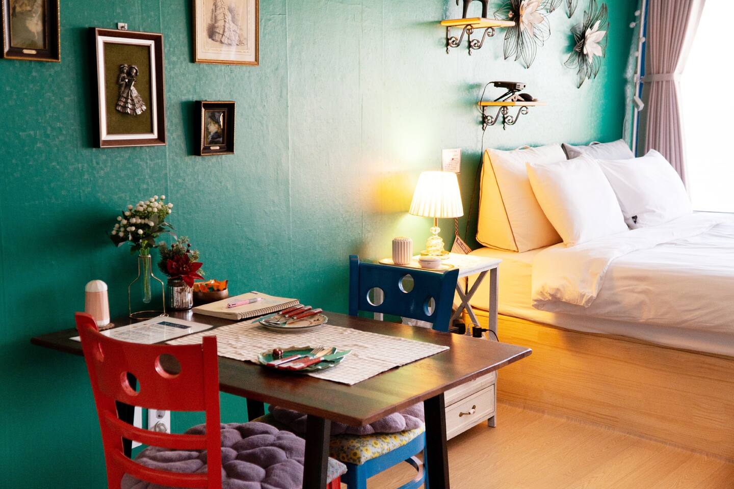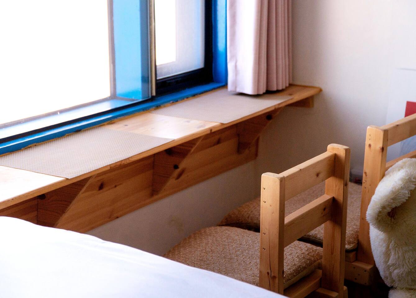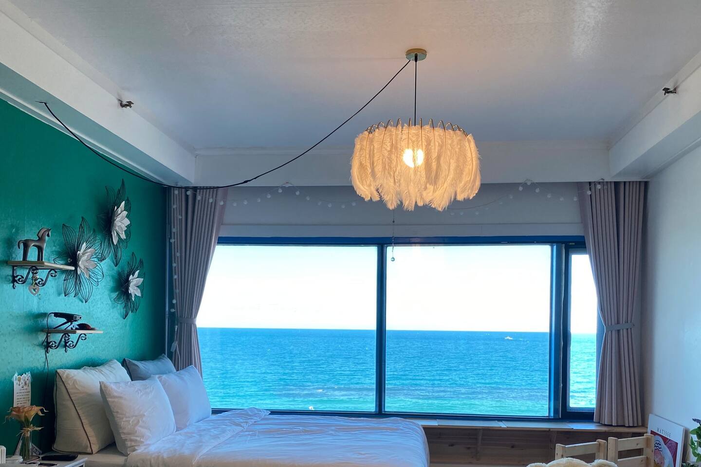 ?️직접 제작한 유니크한 침대와 창가 티 테이블을 통해 멋진 동해바다를 감상하세요.