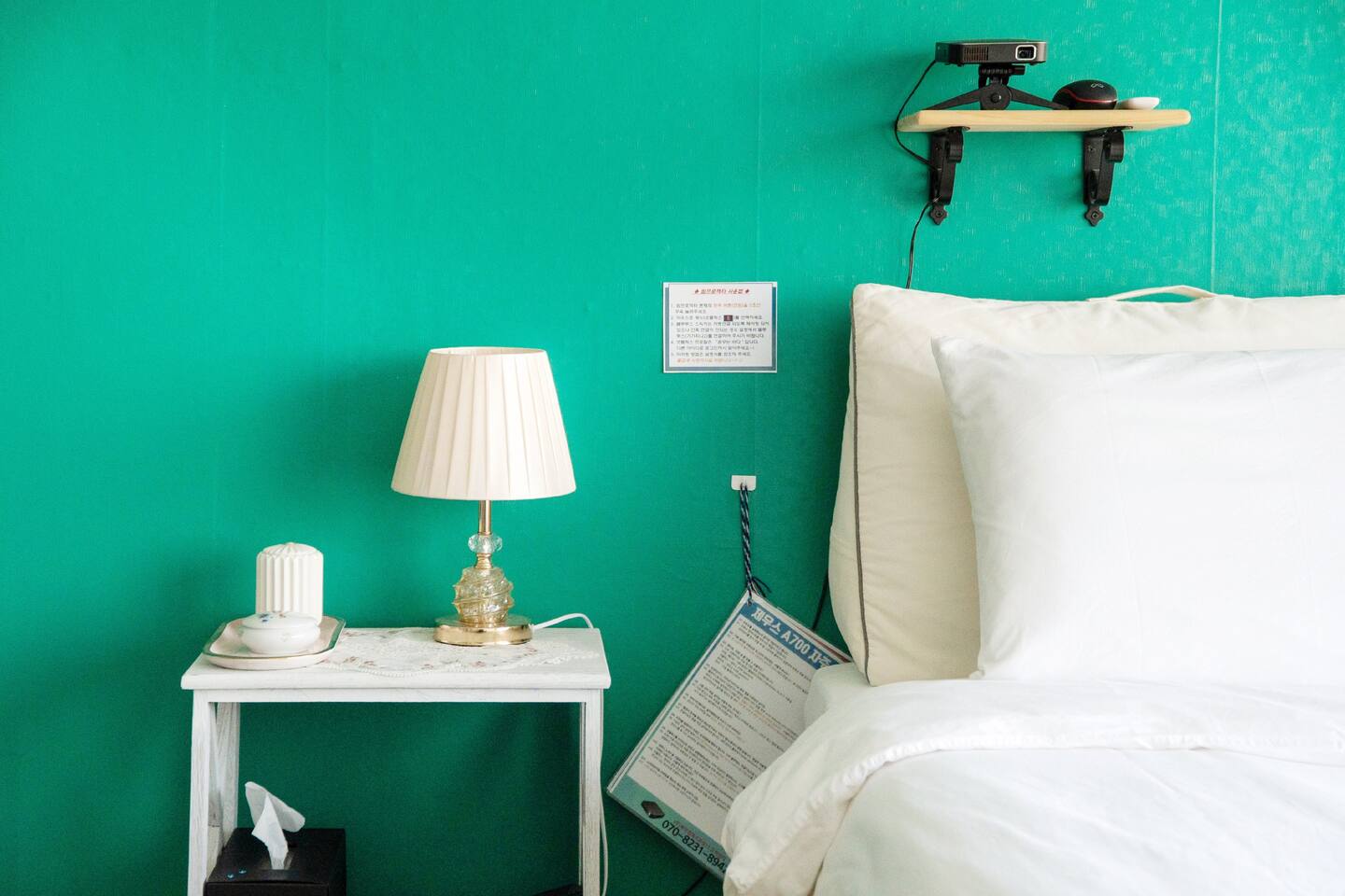 1. 룸 내부 : 빔프로젝터, TV, 에어컨, 오디오, 블루투스스피커 ,헤어드라이어, 고데기, 거울, 스탠드 등