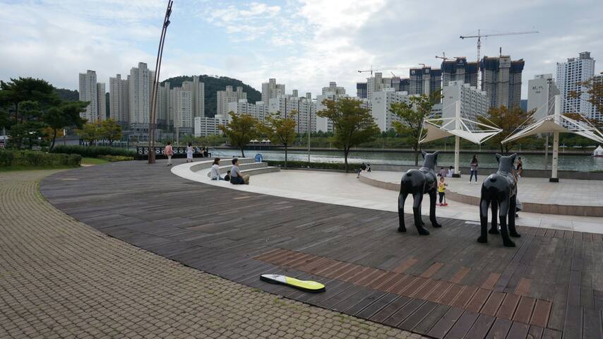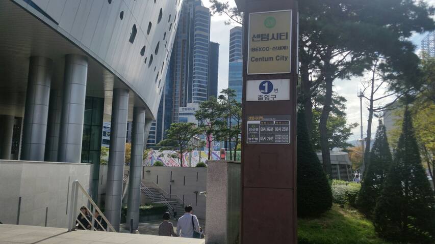 My apartment is near Shinsegae and Lotte Department Store, BIFF-Busan International Film Festival headquarters, BEXCO, Home plus(bIg supermarket), and many restuarants. Easy acess to Busan's excellent transportation System: numberous bus stops, taxi stands, subway line 2