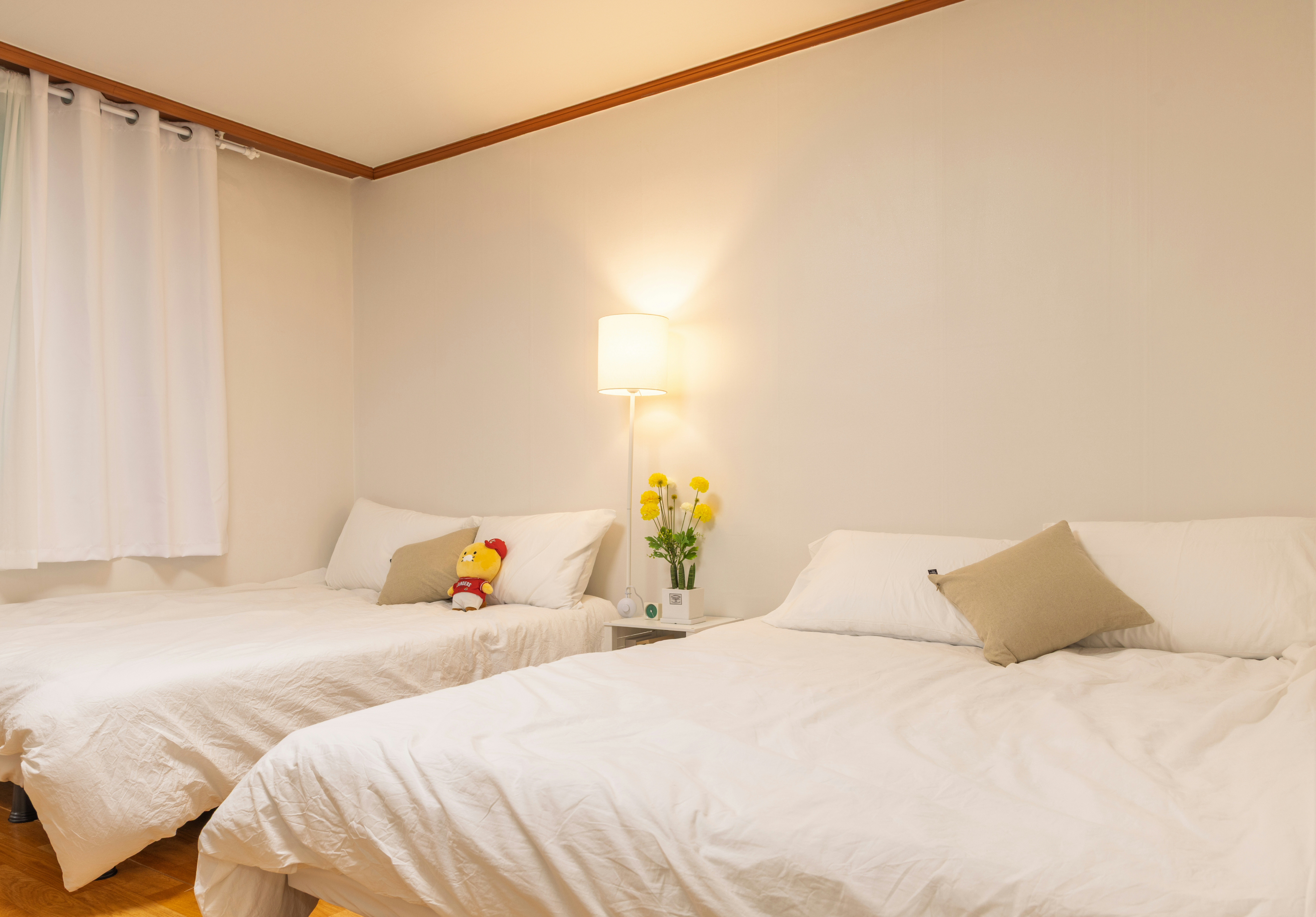 ⊙ 침실1 : 퀸사이즈 침대 2개, 에어컨, 거울, 옷걸이, 핸드폰 충전기