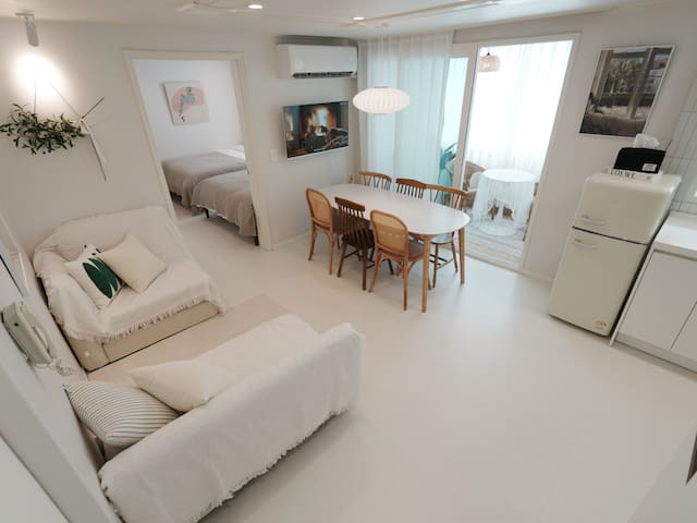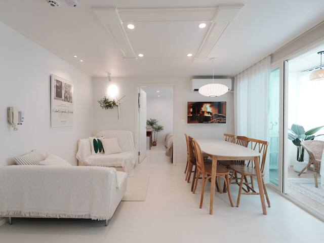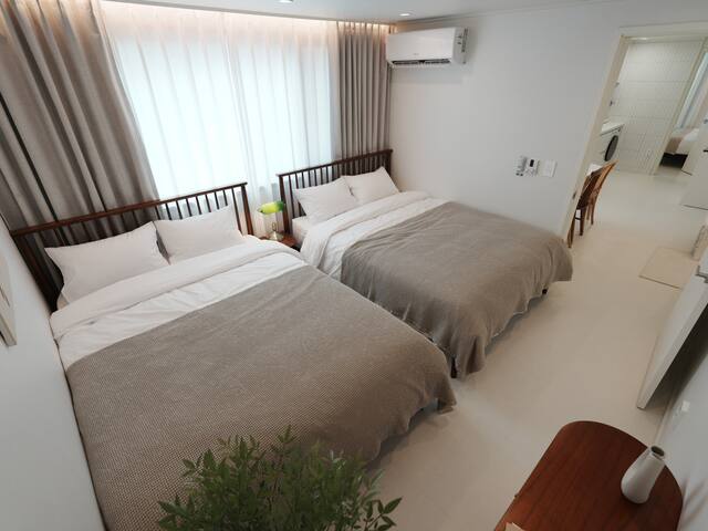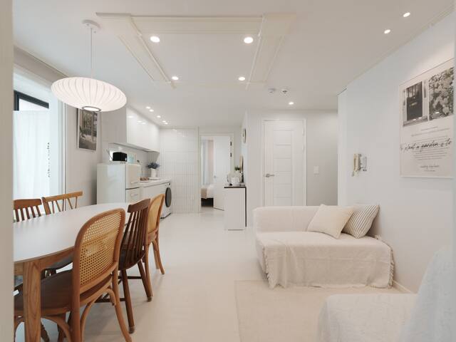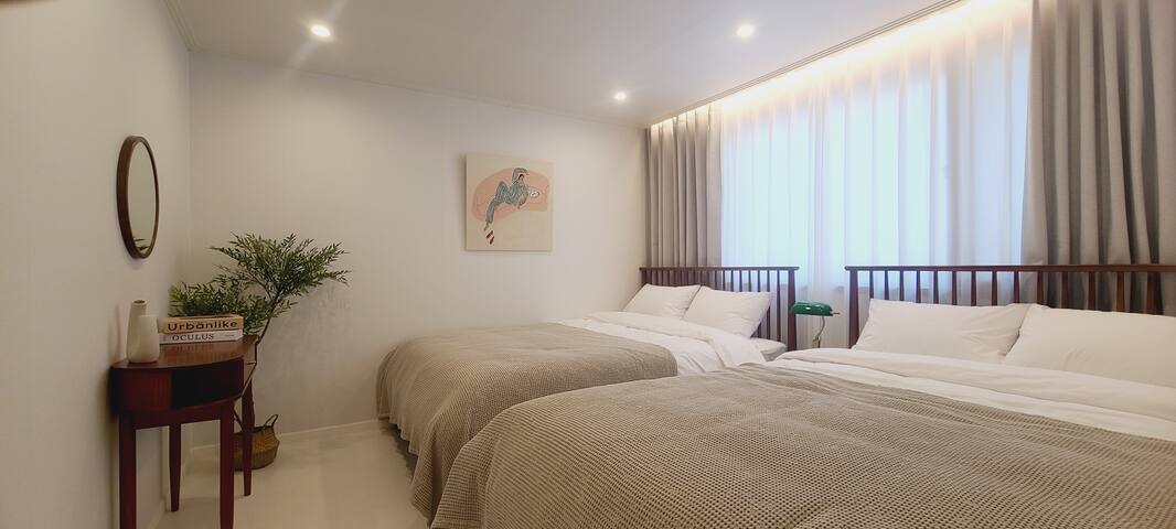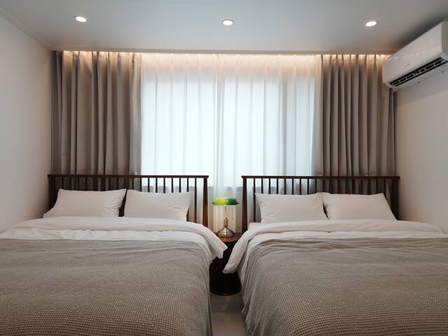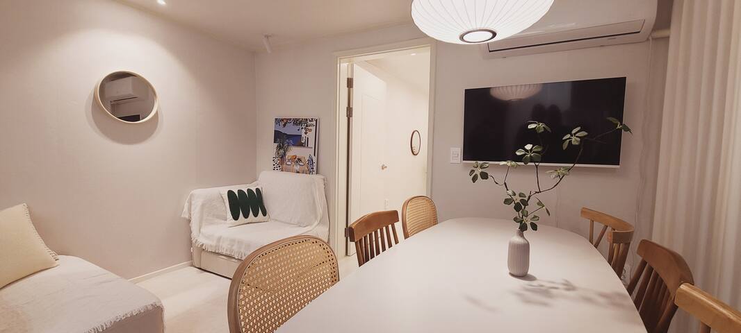 [NEW] Airport Railroad Hongdae Station/Luggage Storage/Free Parking/7 people, Queen Bed/Air Conditioner/Dryer/Direct to Seongsu, Jamsil