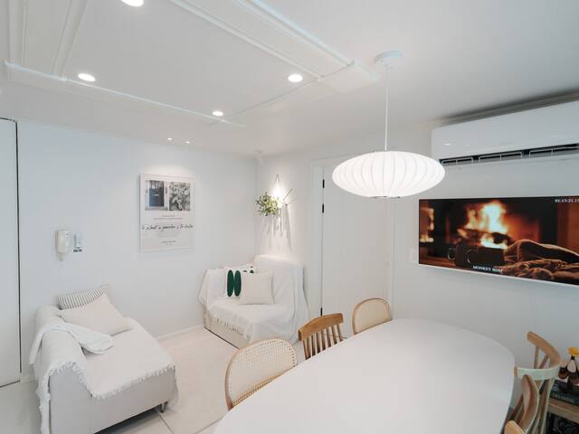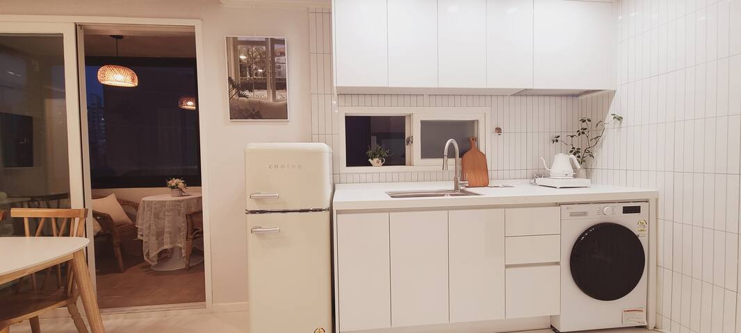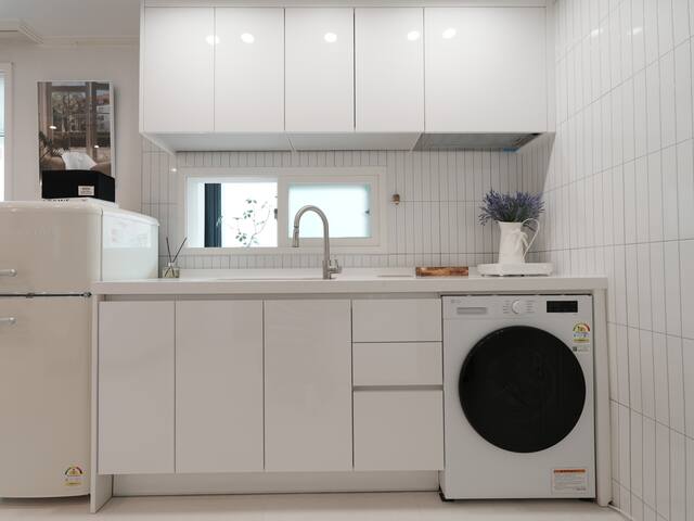 3. (편리한 시설) 무료 Wi-Fi, 스마트TV(개인 계정 필요), 냉난방기, 세탁건조기, 주방 등이 완비되어 있습니다.