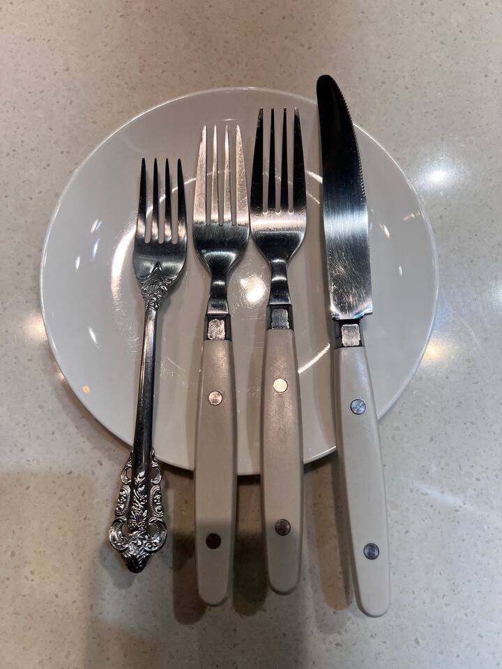 伝統的なトレイ、フォーク、バターナイフ、カトラリーセット、栓抜き、キッチンバサミ