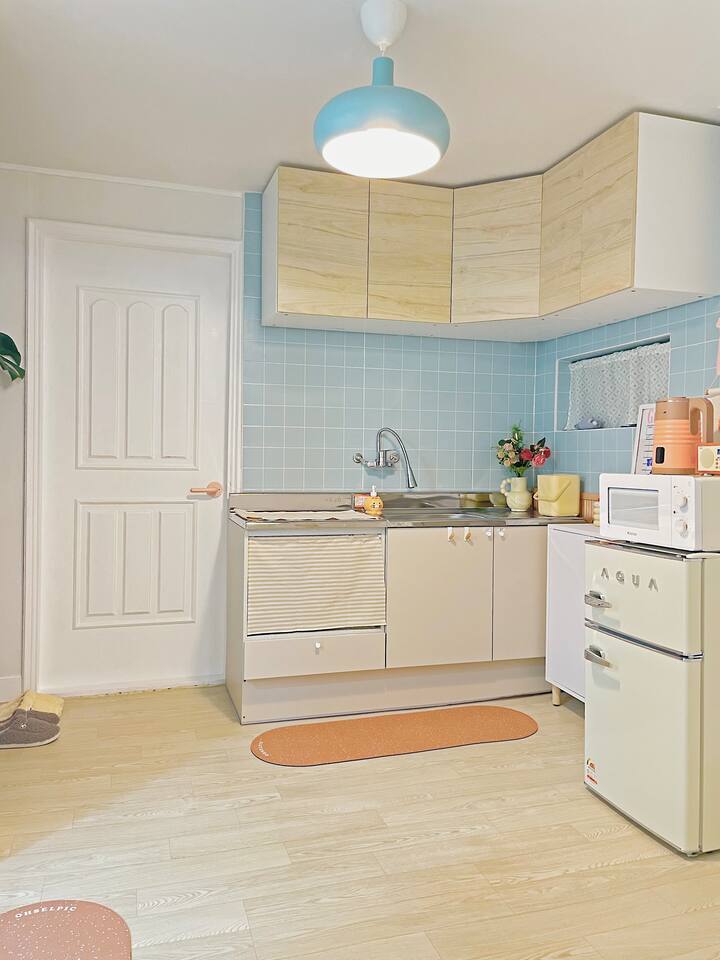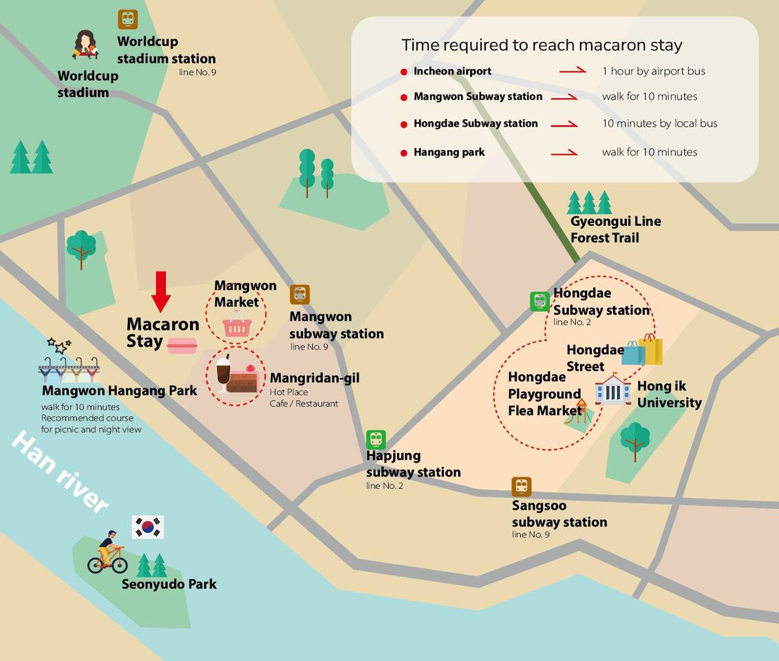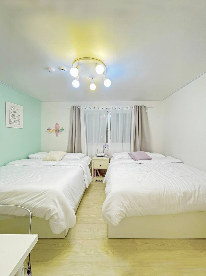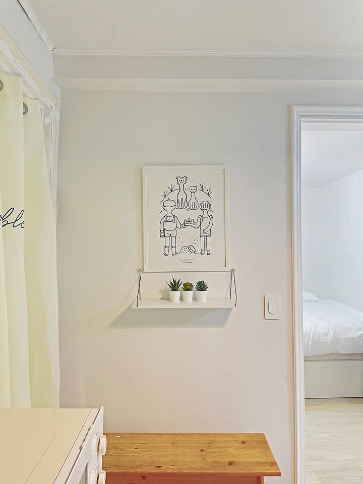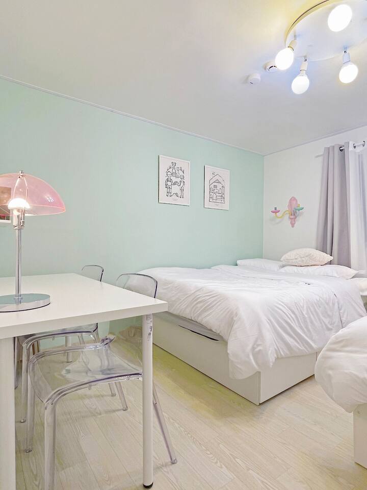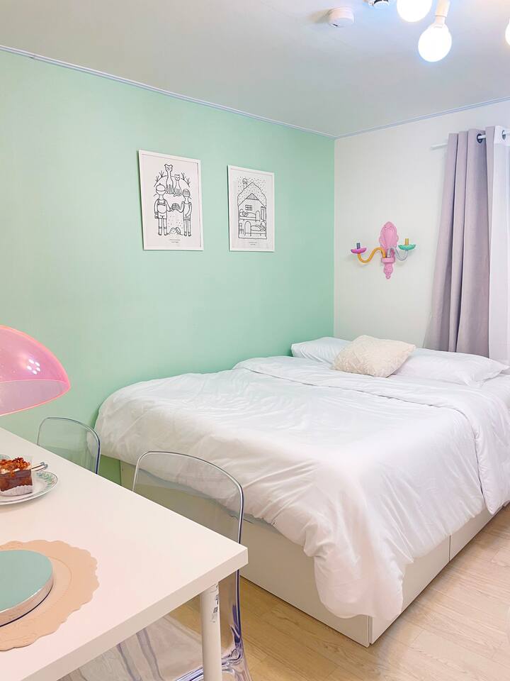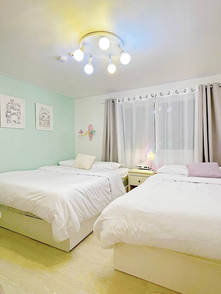 弘大、望遠市場、マンリダンギルに近い :) マカロンにインスピレーションを受けた赤ちゃんとかわいい感じの宿です。キャラクターデザイナーのユニークなスタイリングと、きれいに準備された寝具と備品でリラックスしてリラックスできます。 -弘大入口駅:村バス10分+徒歩5分 -望遠市場:徒歩5分 -マンリダンギル:徒歩5分 -ワールドカップ競技場:バス8分+徒歩8分 -仁川空港:空港バス40分+バス3分+徒歩10分 - 漢江公園:徒歩10分✅1.5階地上に位置し便利で静か住宅街に位置しており、リラックスできます。 ✅部屋2台に2人用ベッドが3つ用意されており、きれいなキッチンとテーブルが用意されています。 ✅少し出て行けば、素敵なカフェや飲食店があり、楽しむことが多く、望遠駅から望遠市場に見どころや地元の感じを見学することも楽しむ :) ✅ワールドカップスタジアムに公演を見に来る方にもおすすめです ✅韓国国籍の内国人は「ウィホーム」でご予約お願いします ?予約人数に応じてご使用ください。 1- 2人 - クイーンベッド1台の使用3-4人 - クイーンベッド2台の使用5-6人 - クイーンベッド3台の使用人数に合わなくても快適にベッドを利用したい場合は、あらかじめホストにメッセージを送信してください。一緒に話をしてみます。 ?[キッチン] キッチンとシンプルな食器、カップ、箸、スプーンとフォークが用意されています。お使いの食器は皿洗いをしてください :) 鍋とフライパンがあり、簡単な調理をインダクションにすることができます。臭いの強い食べ物の調理は不可能なので注意してください。配達食品をさせていただく場合は、分離収集が必ず必要です。・[浴室] きれいに改造されたバスルームで温水シャワーが可能です。浴室用品:歯磨き粉、クレンジングオイル、ボディローション、シャンプー、ヘアコンディショナー、ボディウォッシュ、手洗い剤、休憩、タオルタオルは、長泊滞在の際に洗濯してご使用ください。洗濯機と洗剤はキッチンベランダにあり、自由に使用できます。 ?Room 1)クイーンサイズの2人用ベッド2台と6人用のデスク、椅子 ?Room 2)クイーンサイズの2人用のベッド1台、衣類用ハンガー 全身鏡 ?キッチン ?ヘアドライヤー - 電気ポット - インダクション - ブルートゥーススピーカー-有線掃除機 / ワイヤレス掃除機 - スタンド照明 - ムード照明 ? その他便宜用製品) - 携帯電話充電器 (Cタイプ, iPhone用) 各ベッドごとにビーチ -free WIFI (5g) -衣類用乾燥台 -清掃用品 -水ティッシュ - ドライ用櫛 - 洗濯用洗剤と繊維柔軟剤 - インスタントコーヒーとスナックAirbnbメッセンジャー弘大入口駅、望遠駅、望遠市場、マンリダンギル、漢江公園隣接9号線望遠駅徒歩13分村バス停留所徒歩1分近隣住民のために夜10時以降はパーティーや大きな騒音を控えてください。セルフチェックイン / チェックアウト ✅その他の注意事項 . 基本人員6人以下です。大きな騒音が出ないようご注意ください。 (パーティー禁止) .次のお客様のために臭い料理は禁じます。 .ペット不可 No pet .室内絶対禁煙です No smoking indoors.・異物によりトイレの便器が詰まると修理費用が請求されます。請求されます。 ??分離収集案内? -紙、プラスチック、ビニールが最も多く出てくるリサイクル素材です。 - 内容物を空にして食べ物が埋まった場合は、洗浄後、多目的室の分離収集箱に分類して入れてください。 (黒いゴミ箱) - 食品は貝殻や果物の種など動物が食べられないことを除いたもので、キッチンの黄色いゴミ箱の中に袋の中に入れてください。 - カップラーメンを召し上がって残った食べ物を便器に捨てる方がよくあります。排水管が詰まった場合、金額が請求され、多くの方が不便を経験するので、絶対便器には休止を除いたものを入れてはいけません。 - 休憩、女性用生理用ナプキン、食べ物が拭かない容器や紙器などのみ一般ごみで集めてください。 -5日以上長期宿泊客の場合、リクエストに応じて途中でごみを収集しています。 2週間以上滞在の場合は、1週間で簡単な清掃を無料で行います。