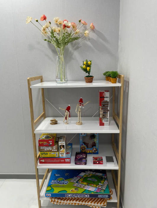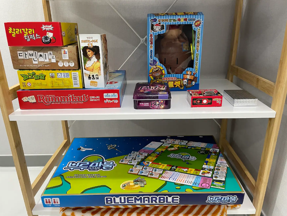 10여종의 보드게임과 TV와 넷플릭스, 디즈니, 웨이브 등 다양한 OTT를