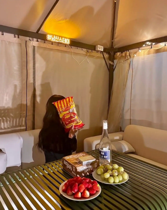 1층 넓은 마당의 텐트안 쉼터와 남산뷰가 보이는 옥상 포토존까지..