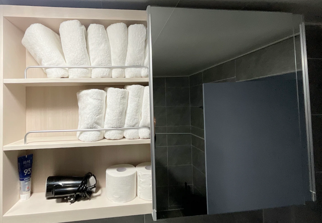 샴푸, 컨디셔너, 바디워시, 치약, 비데, 수건, 헤어드라이기