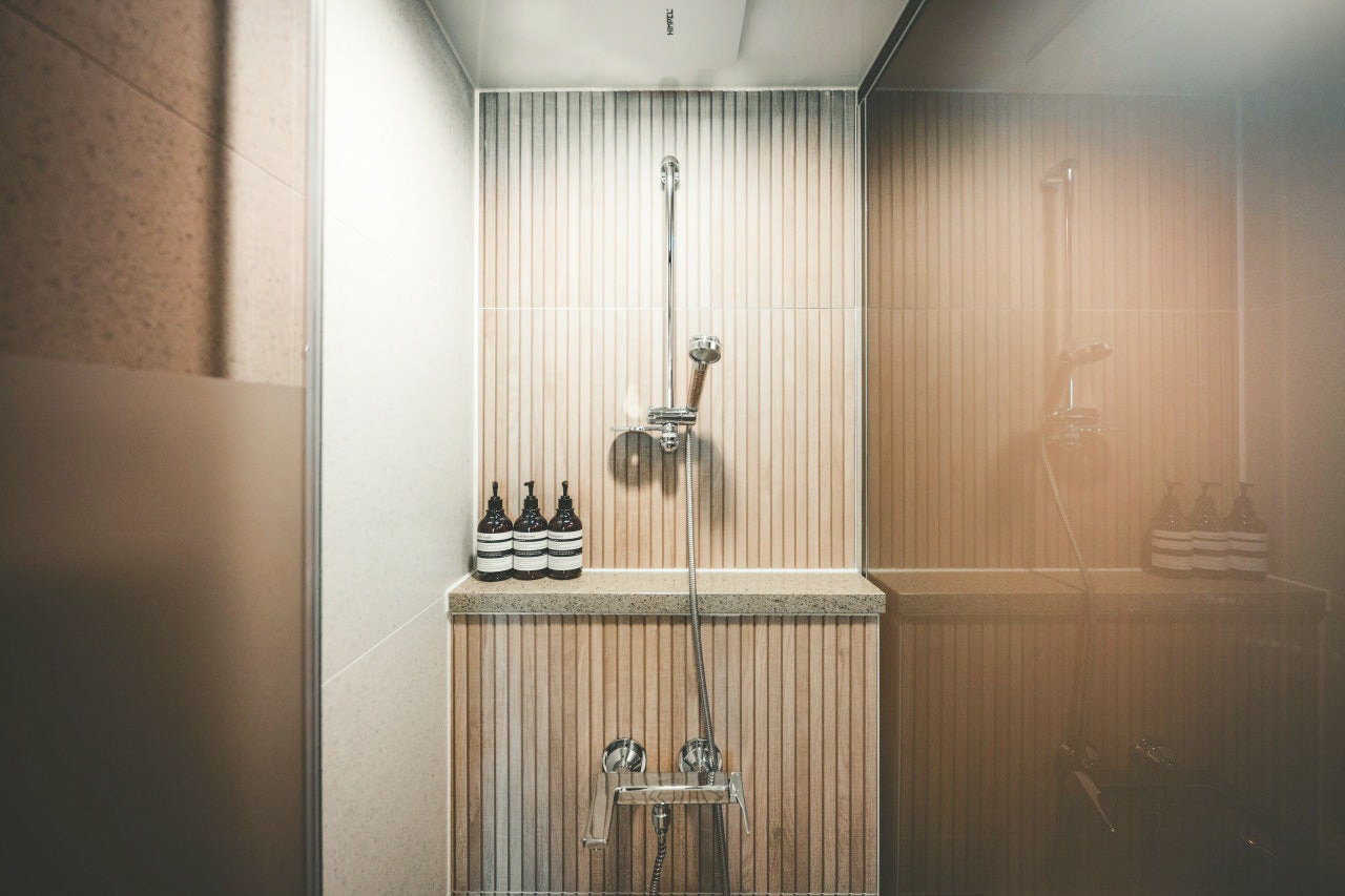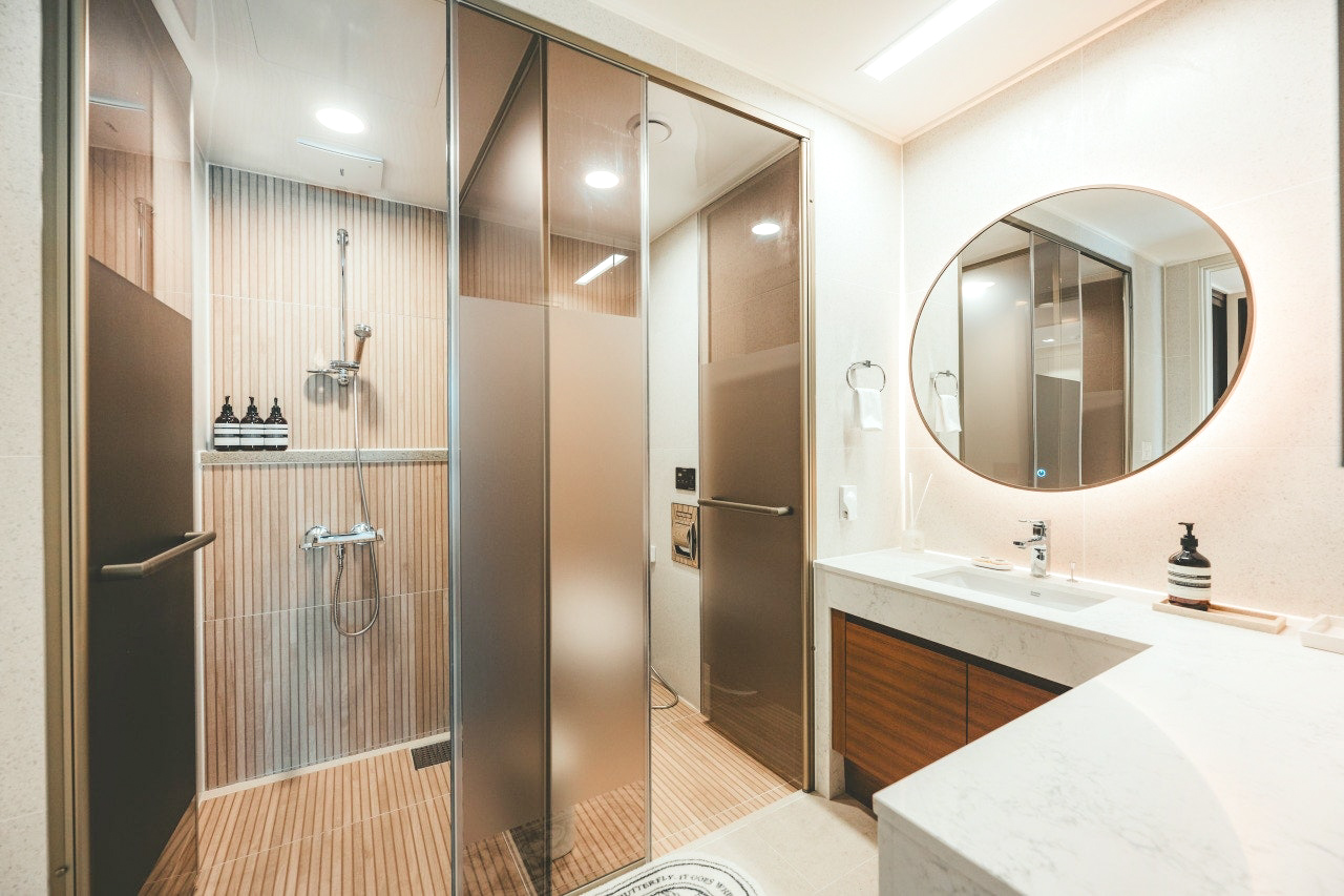 4. 숙소 실내 : 신축 건물이라 아주 깨끗하고, 시스템 에어컨도 2대 있어 시원하게 지낼 수 있었습니다. 제 개인적으로는 화장실이 되게 고급스럽게 되어있어, 화장실 사용할 때마다 기분이 더 좋아졌습니다.