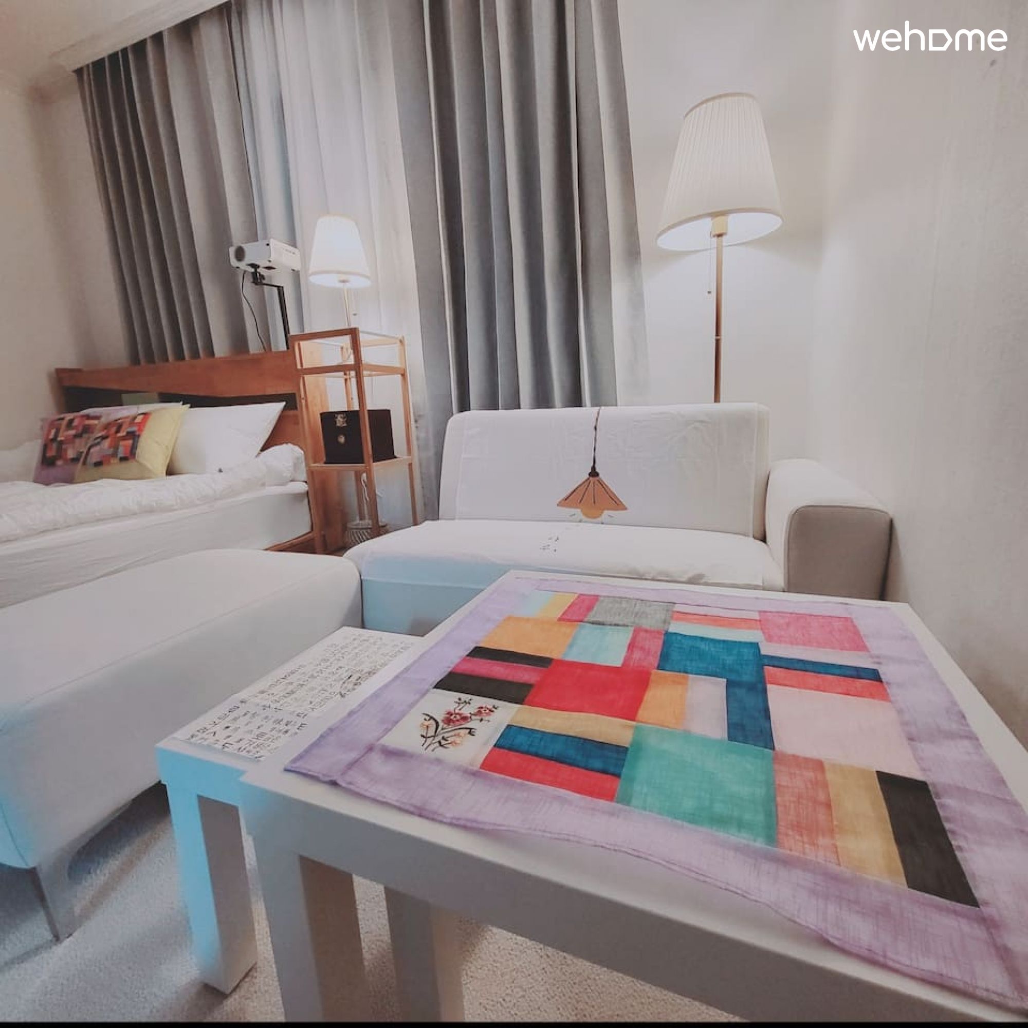 침실 1 : 퀸 사이즈 침대, 쇼파,낮은 테이블,빔 프로젝트,공기 청정기
