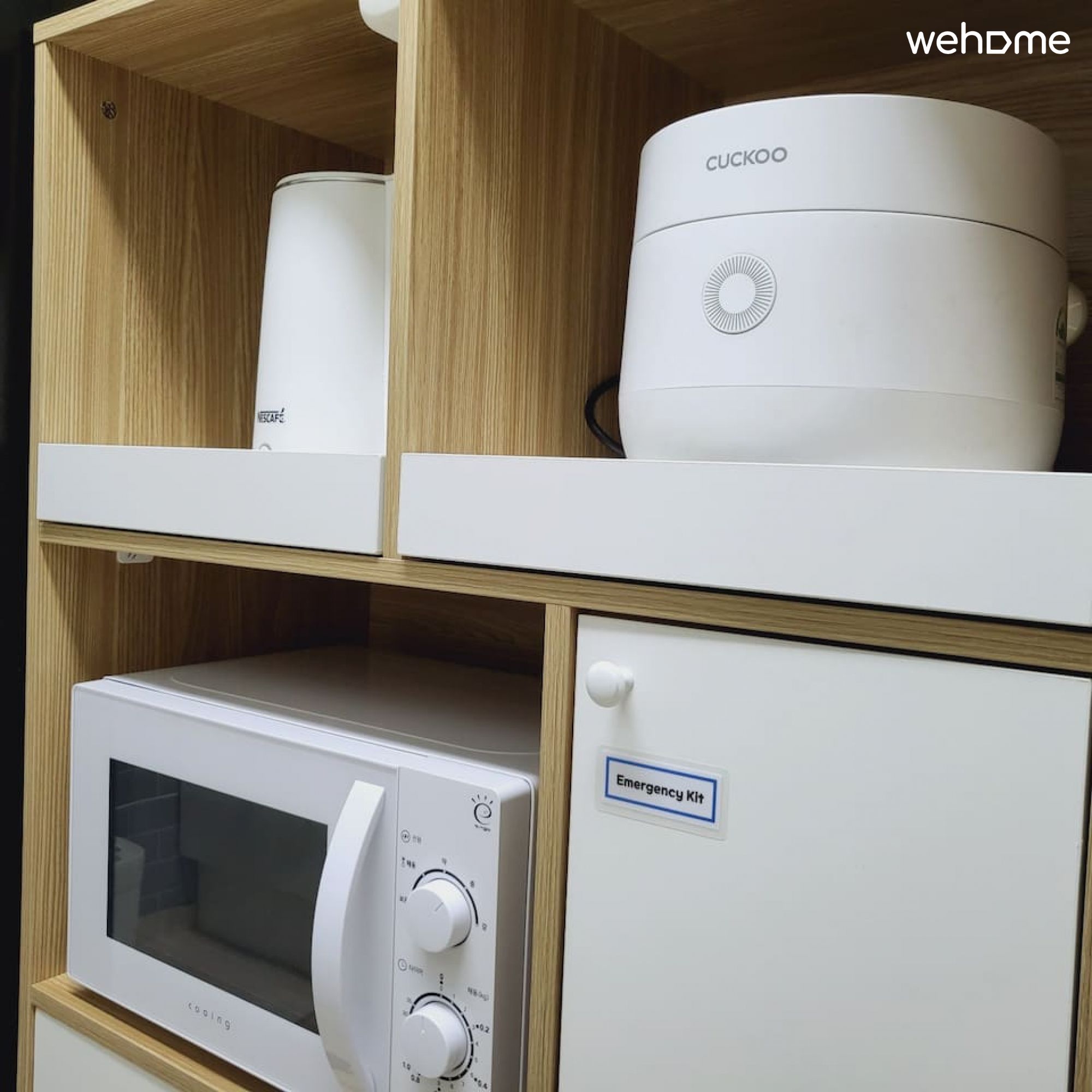 주방: 조리공간, 가스렌지, 냉장고, 전자렌지, 전기밥솥, 전기주전자, 각종 조리도구와 식기들,와인 관련 용품&막걸리 용품