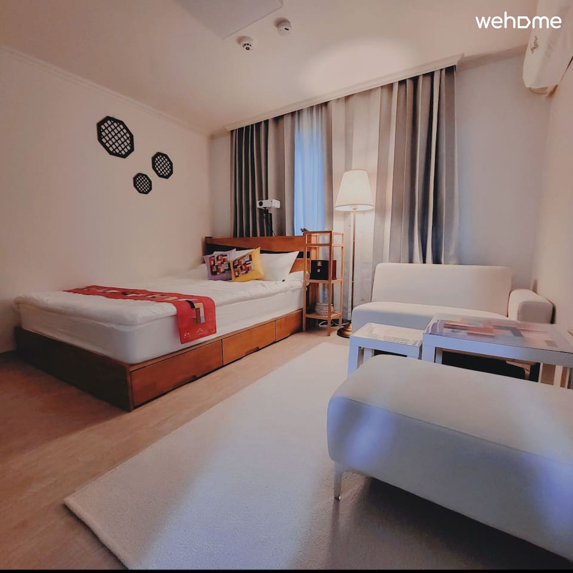 *조명과 가구 소품에 따뜻함과 한국스러움을 표현해 게스트의 편안한 휴식을 위해 섬세하게 준비한 공간입니다.