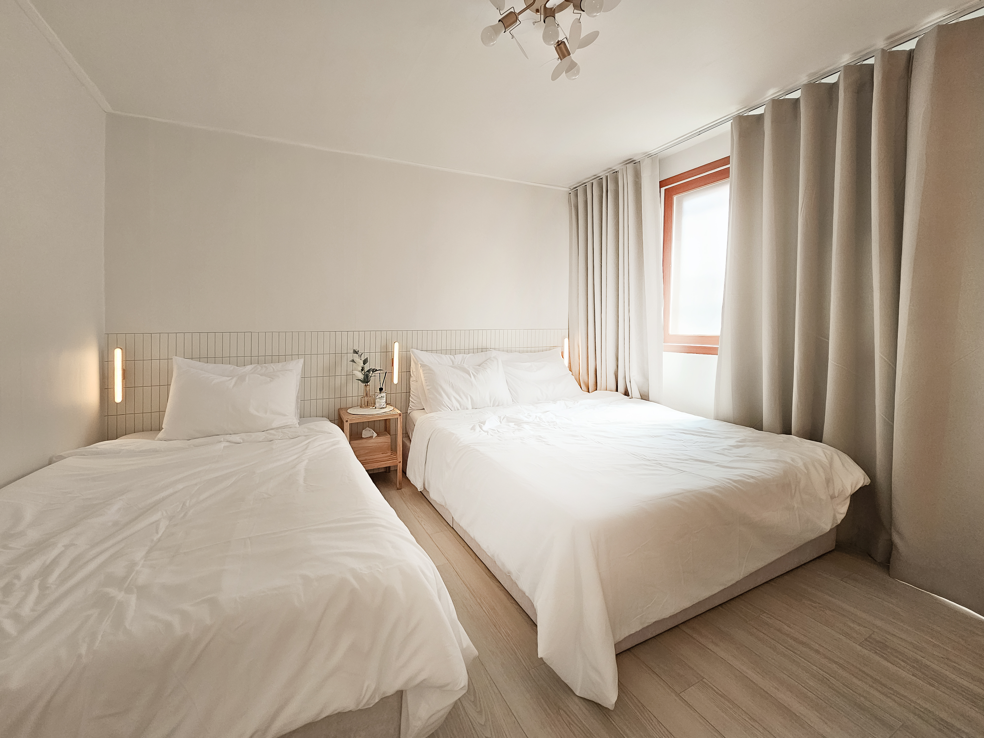 - 퀸사이즈 침대 1개 + 슈퍼싱글 침대1개