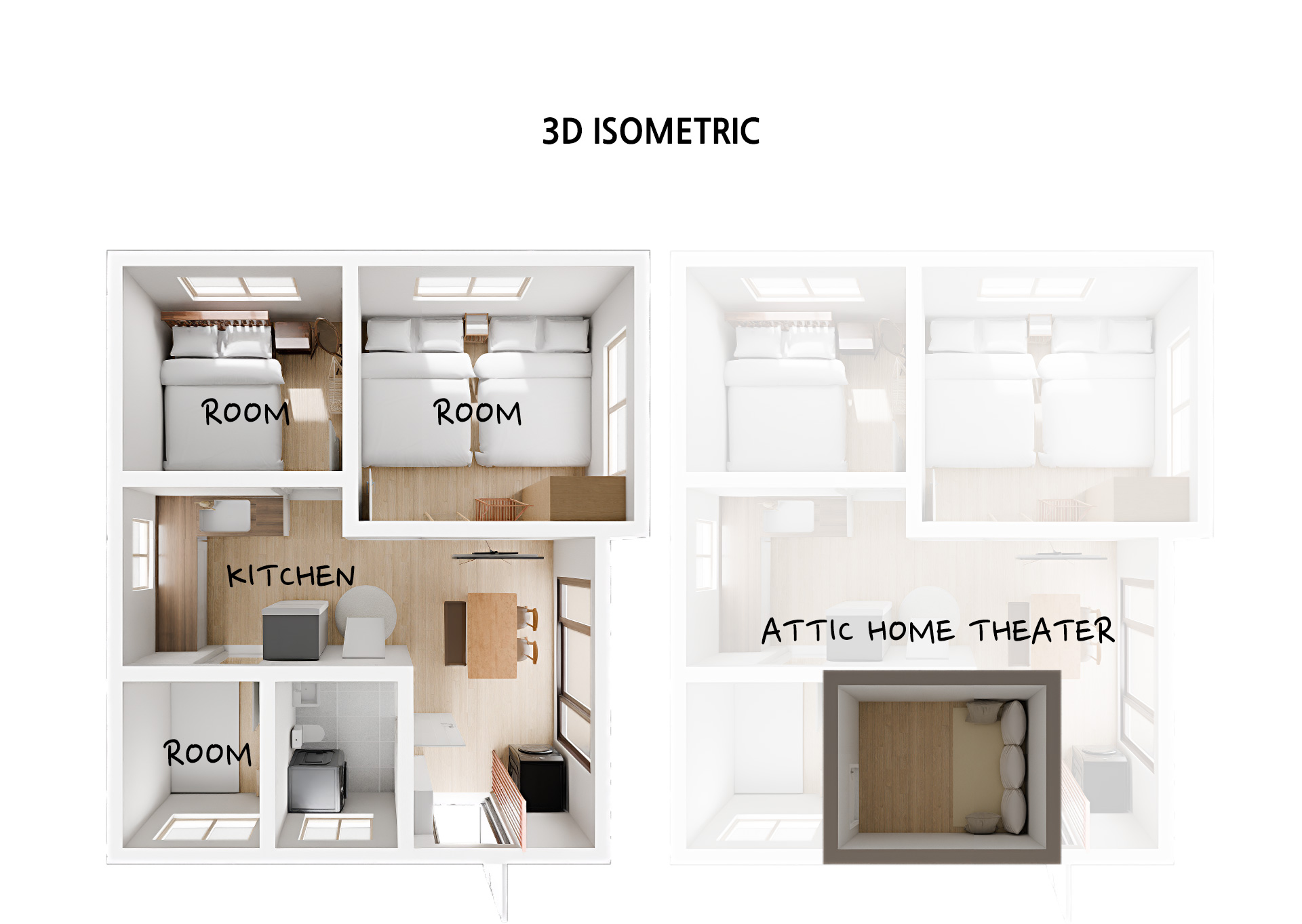 • 거실, Room1은 냉방 에어컨, 다락은 냉난방에어컨 설치
