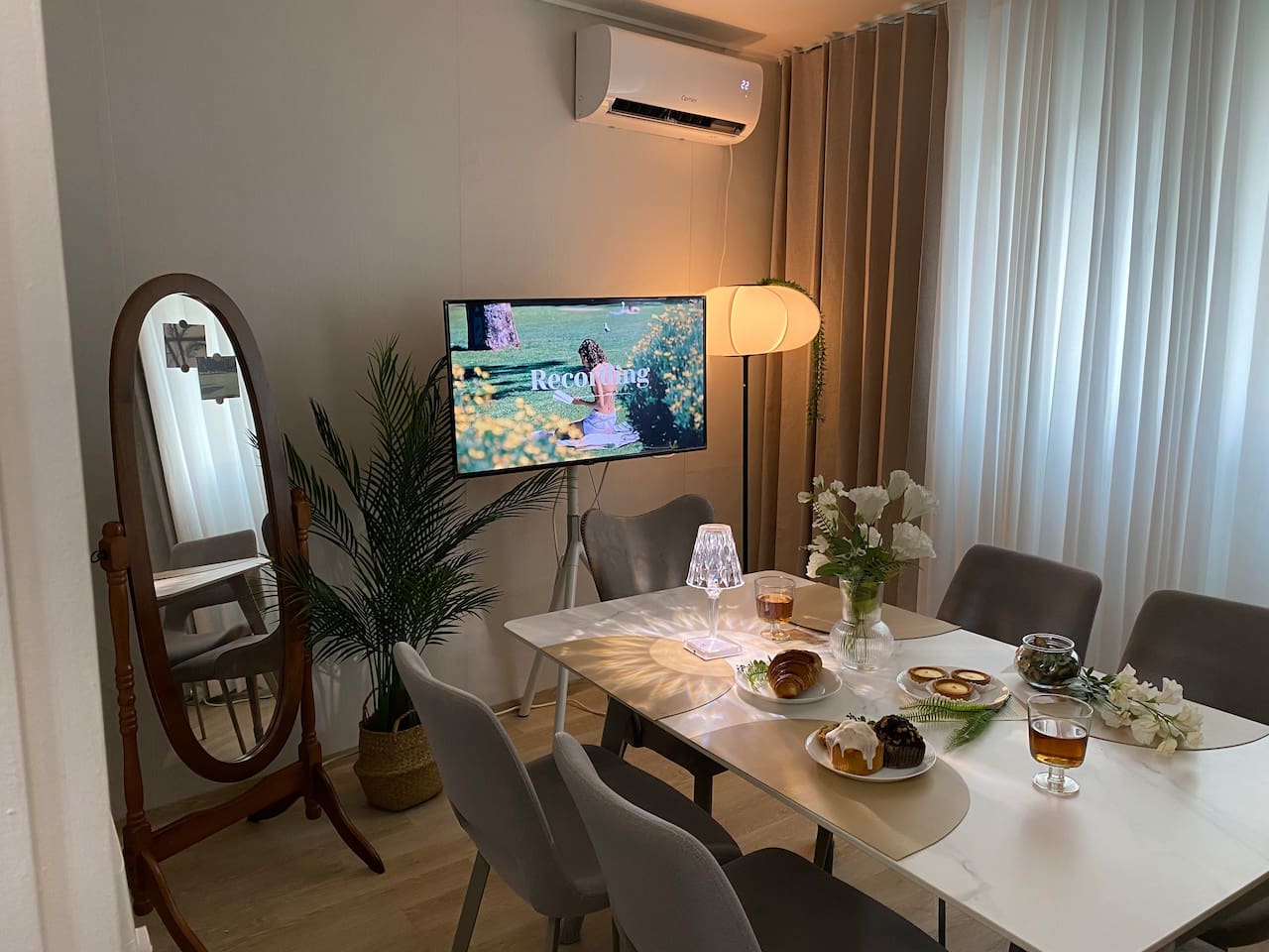 화장실도 2개에 다이닝룸 별도로 있고 편하게 머물다 가요!