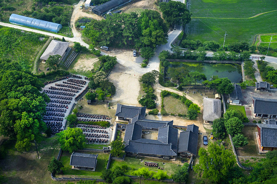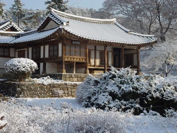 Important Folklore Material No. 190 enclosed shipbuilding scholar and teacher of yunjeung King Sukjong when old houses. Spacious outer court, and in front of the house, digging artificial pond in front of him, creating a circular island in the middle of the garden adorned The rear of the main house, using the gentle slopes, landscaped backyard with a unique and beautiful space structure of the dwelling houses in Korea are showing.
