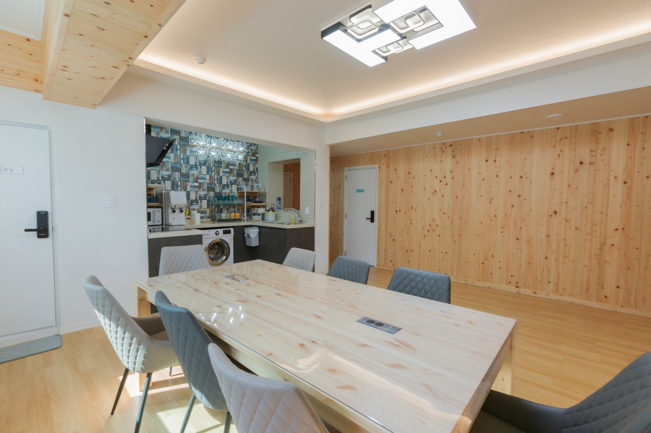 It is a nice house on Ttaengtaenggi Street right next to Gyeongui Line Forest Park Book Street. With new remodeling, it has clean facilities and an open roof. The spacious living room provides a... See more