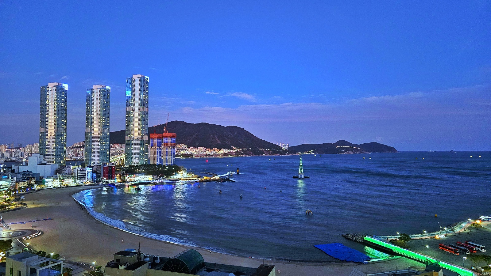 1. Excellent location right by the Songdo Beach, offering stunning ocean views, especially at day and night.