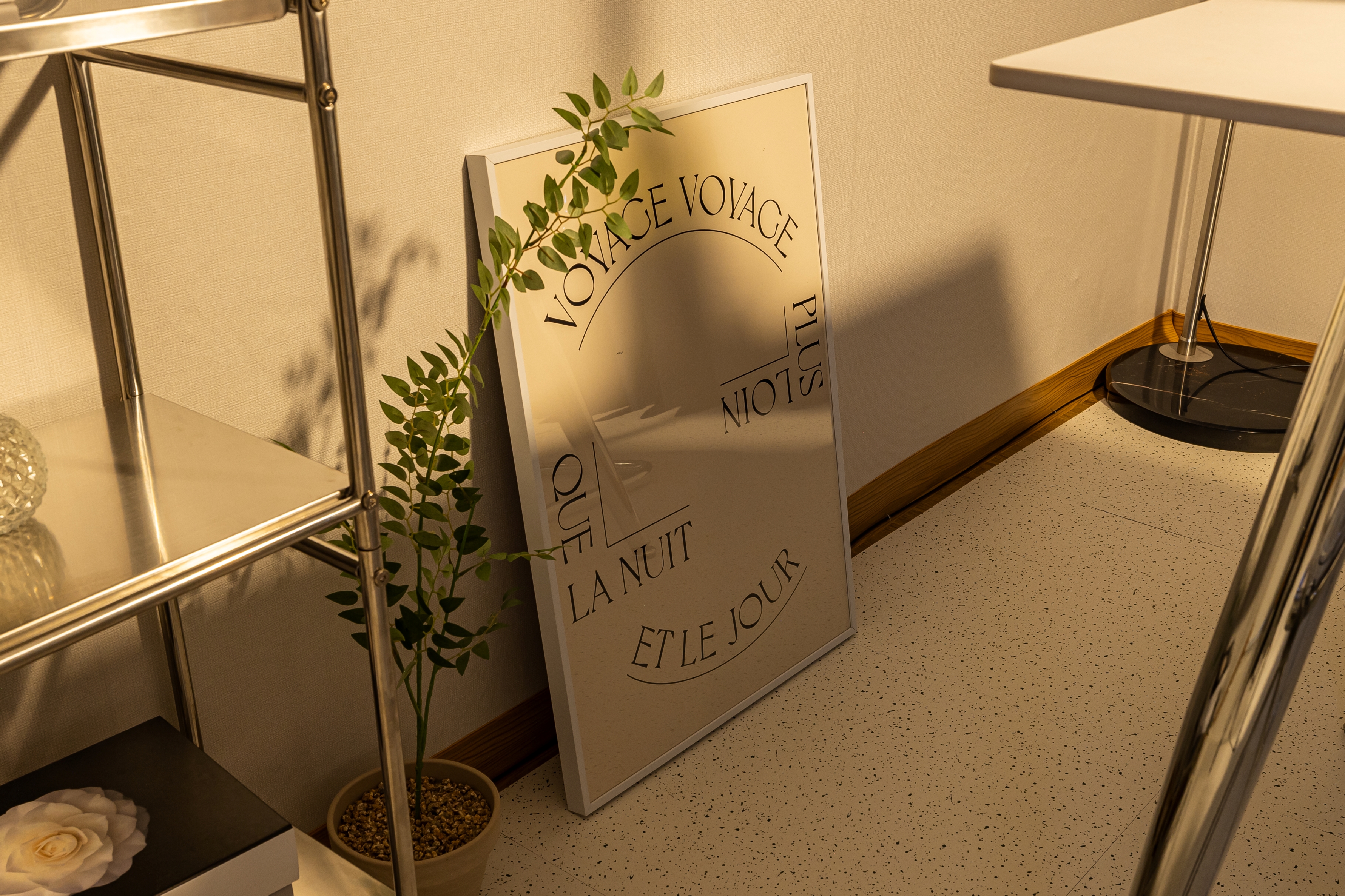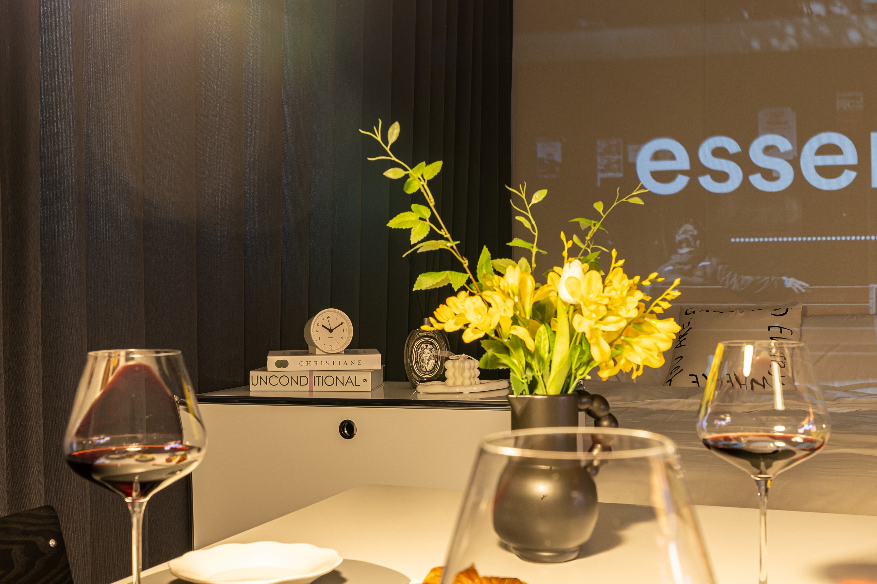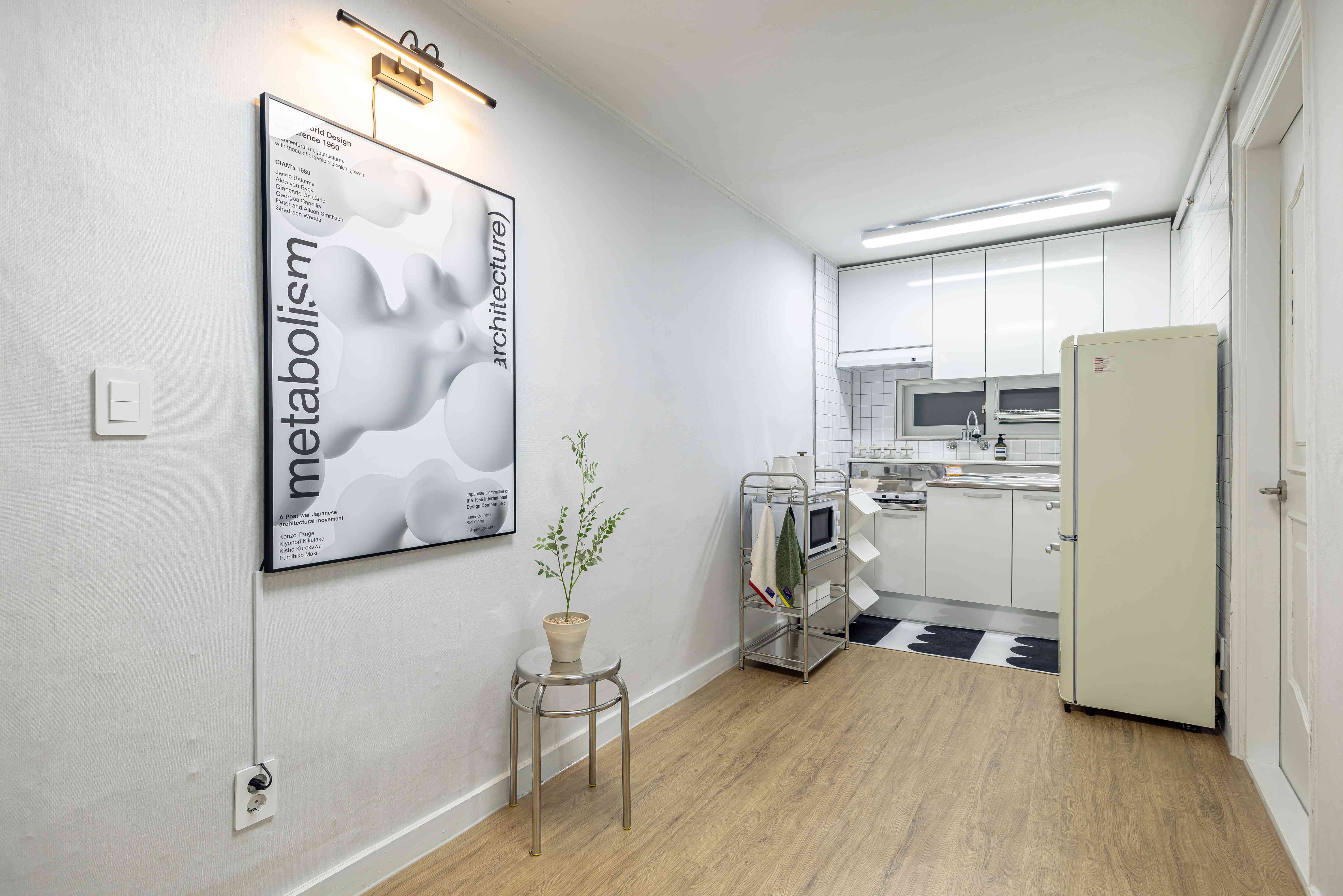 It is a beautiful and sophisticated space with a midcentury interior by professional designers.