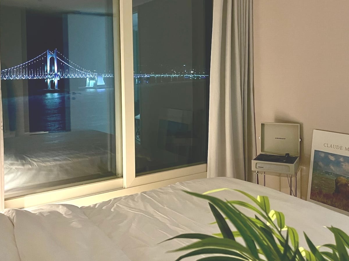 -광안리에서만 에어비앤비 세번 가봤어요! 싹 다 그 중앙 술집에있는 바다 바로 앞 거리에서 묵엇는데 거기도 엄청 좋다생각했는데 여기 뷰가 정말 젤 좋았어요 분위기 있고 젤 바다랑 붙어있는 느낌 ㅠㅠ 맛집들 근처라 위치도 좋았어요 ㅎㅎ