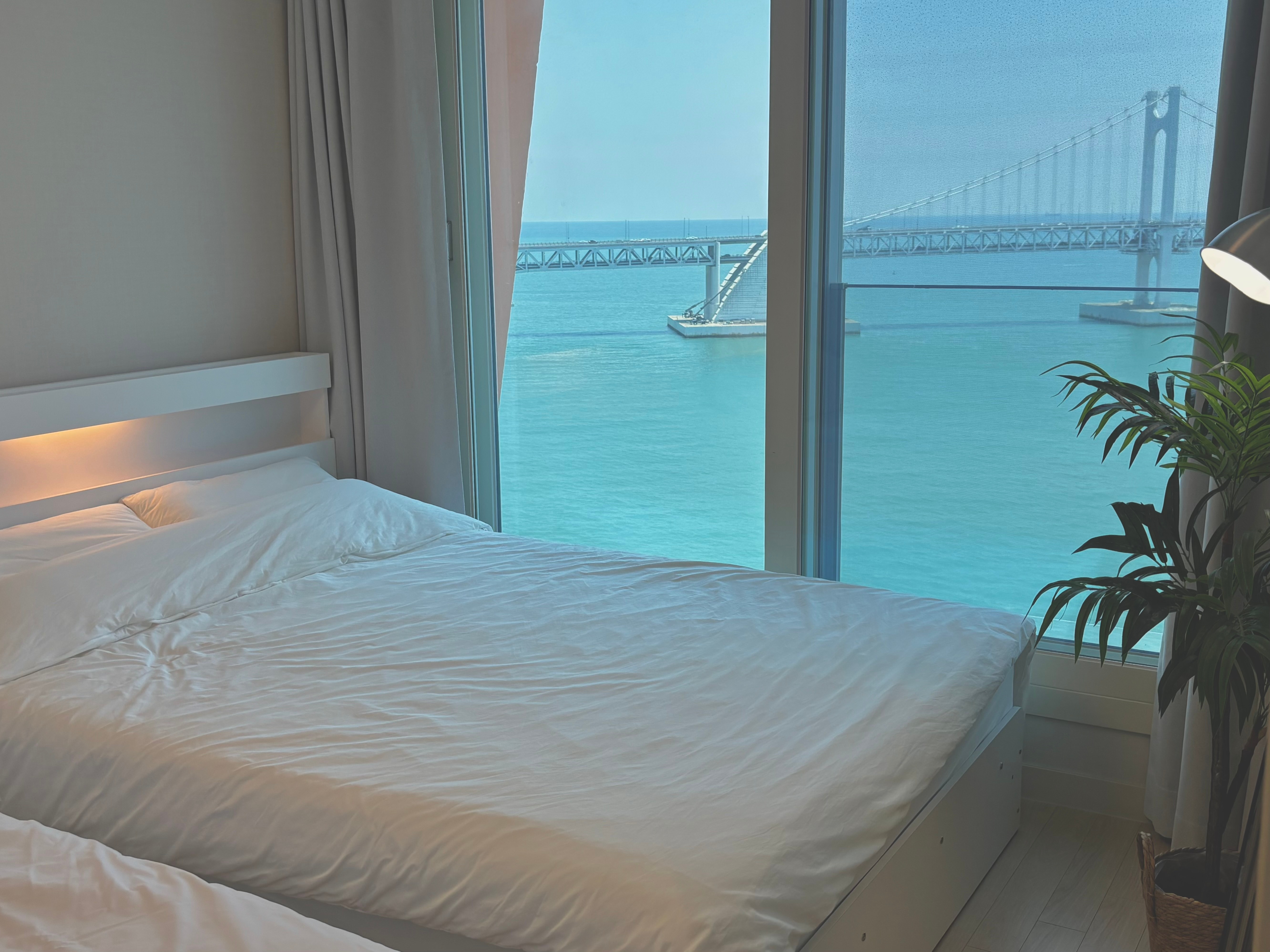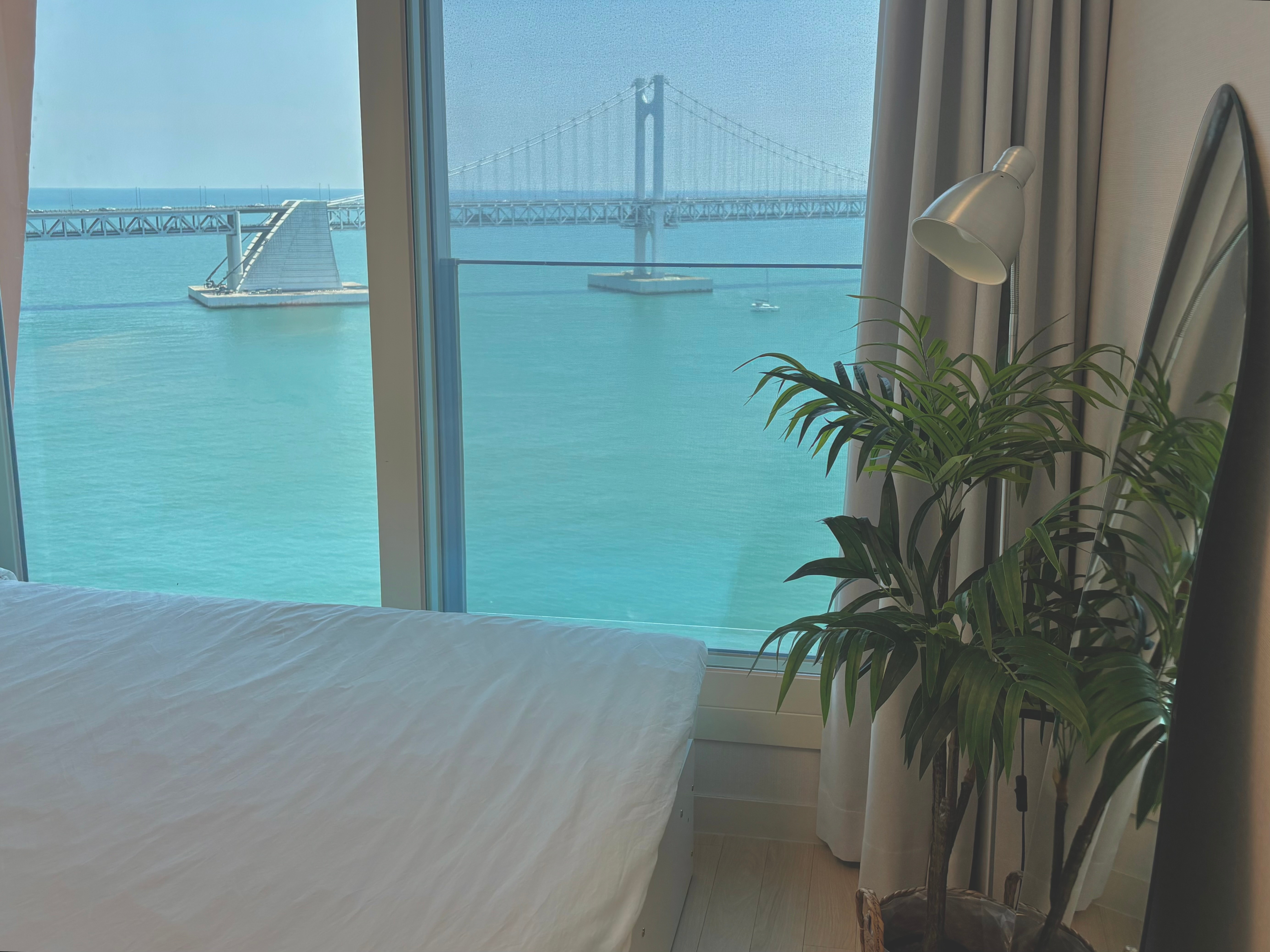 이쁘다. 와! 진짜 너무 너무 잘 왔다. 숙소에 들어선 순간부터 감탄사의 연속이었습니다. 숙소 곧곧 구석구석 디테일함과 컨디션은 물론이고 눈 앞에 펼쳐진 광안대교를 비롯한 광안리 해수욕장의 전경은 만족 그 이상이었습니다.
