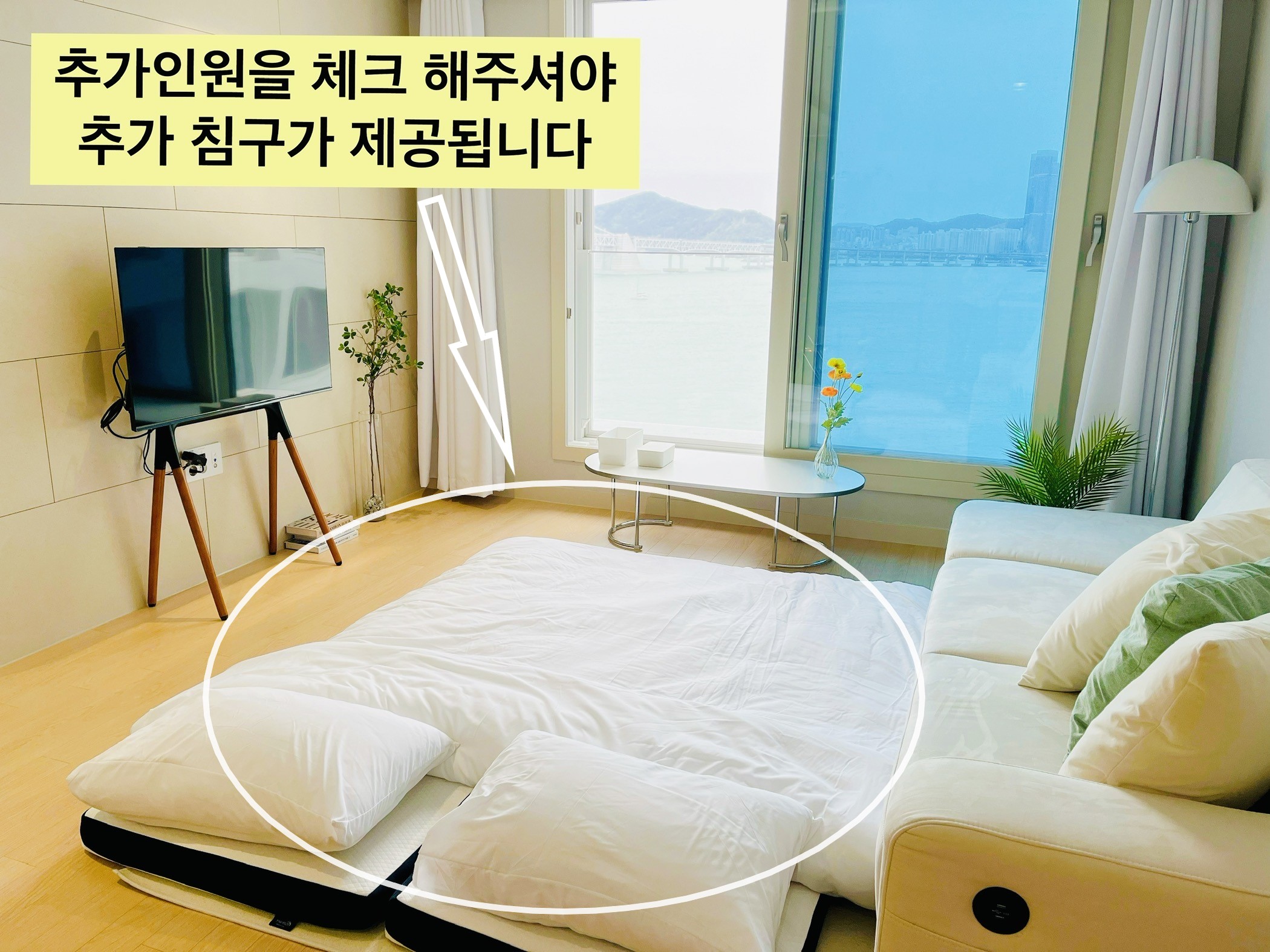 일단 들어가자마자 정말 깔끔하게 정리되어있었고 좋은 향기까지 나서 들어갈 때부터 기분이 좋았고, 무엇보다도 거실과 침실에서 보이는 광안대교 뷰가 정말 멋졌어요 !