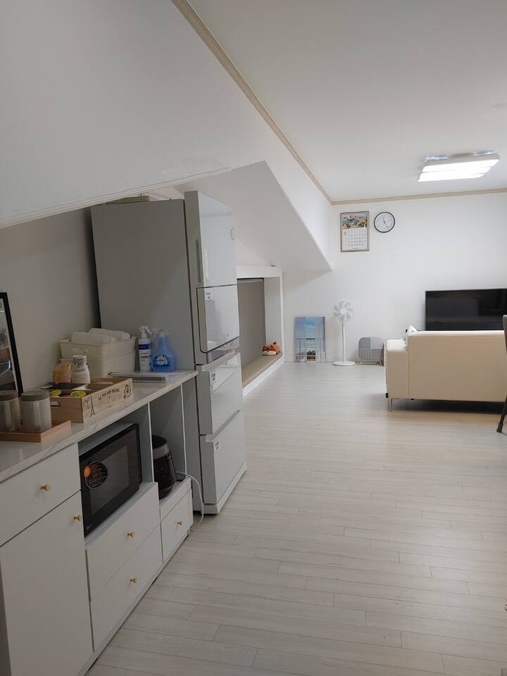 homeGPT Reviewer이 숙소는 해변과 매우 가깝고 주변에는 다양한 카페와 식당이 위치해 있어 위치가 최적입니다. 숙소는 넓고 깨끗하게 유지되고 있으며, 세련되게 리노베이션되어 자연광이 잘 들어와 밝은 분위기를 제공합니다. 호스트는 친절하며, 냉장고에 콜라와 간단한 식료품을 제공하는 등 세심한 배려를 보여줍니다. 숙소에는 편리한 대형 냉장고, 커피머신, USB 케이블 등이 구비되어 있어 편리한 생활이 가능합니다. 이 숙소는 가족 단위 여행객이나 친구들과의 여행에 이상적으로, 편안한 숙박을 제공합니다.