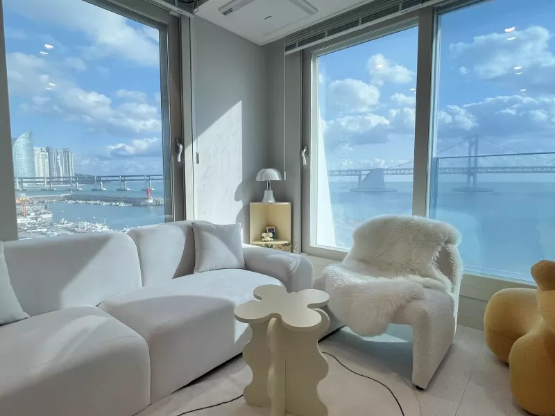 제가 숙박했을때 비가와서 광안대교가 안 보이면 어쩌지 걱정했는데, 걱정과 다르게 거실과 침실에서 광안대교가 보여서 행복했어요ㅠㅠㅠ 주변 회센터도 가깝고 유명한 마켓도 구경할 수 있어 위치도 짱짱 ! !