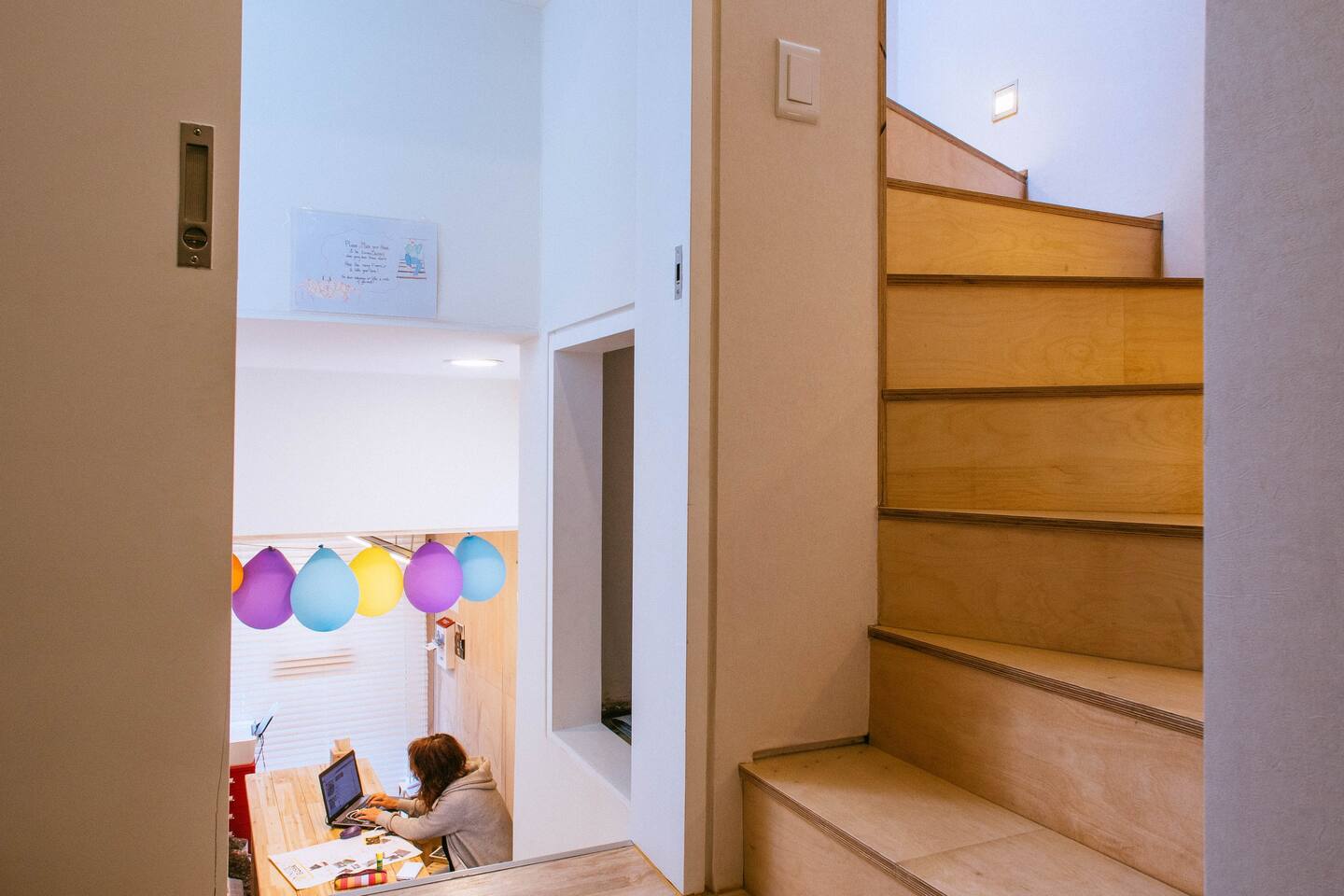 - Two levels floor connected with wooden stairs inside the room