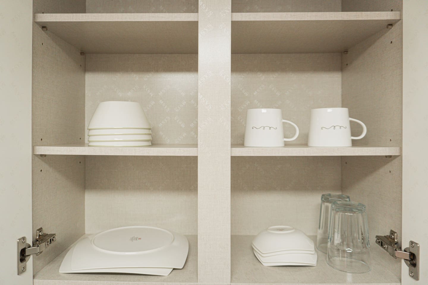 Plates, utensils, refrigerator, gas stove, electric pot, microwave