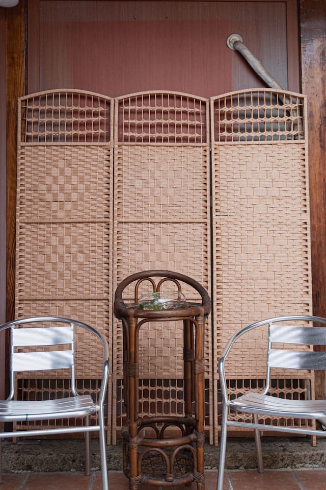 Comfortable zone in the garden to stay cool and feel the seasonal breeze (Chairs and garden)