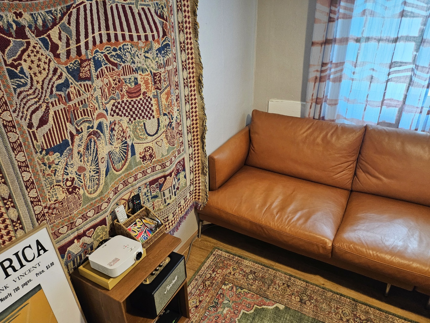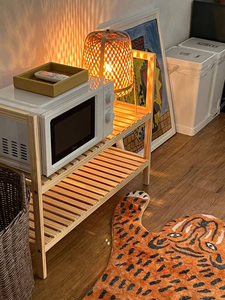 빔 프로젝터 (넷플릭스, 유튜브 가능)가 있으며, 소파와 커다란 빈백이 있어 4명에서 둘러 앉을 수 있는 테이블 사이즈로 식사나 야식을 즐기시기에 충분합니다! 소파가 크고 아늑해서 침대로도 사용가능합니다.