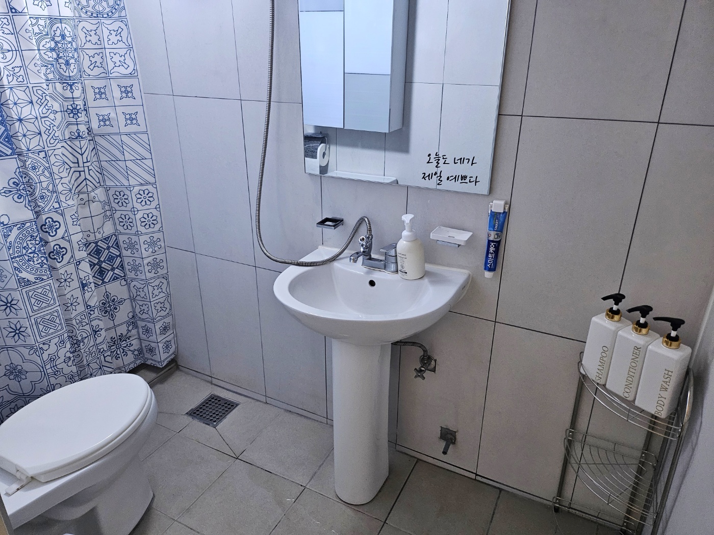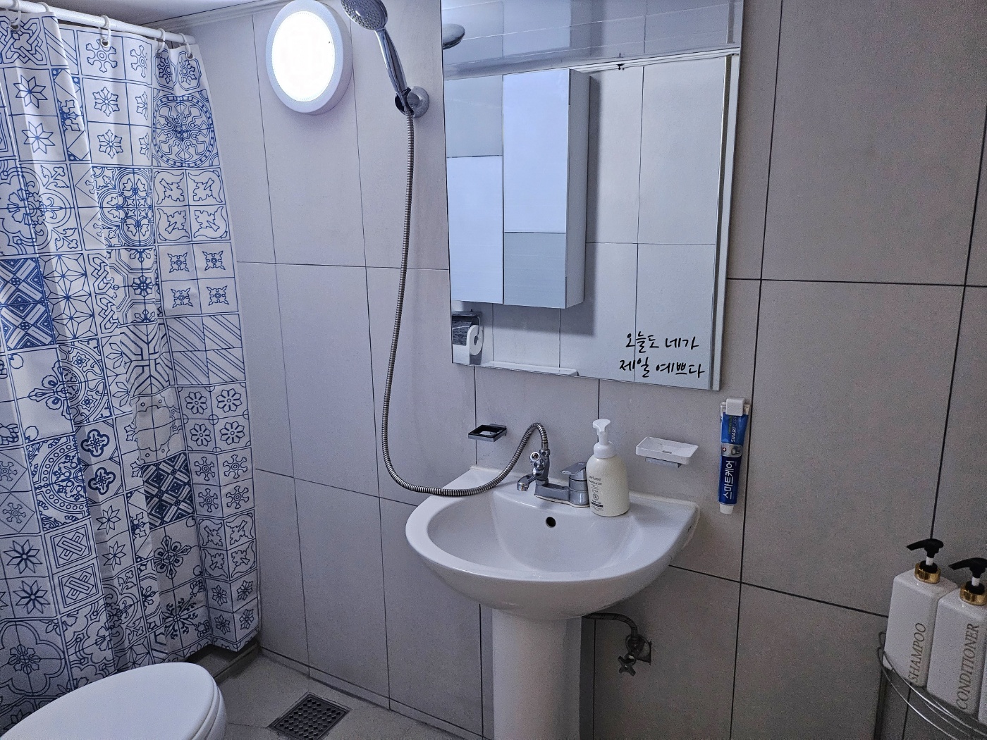 샴푸, 바디워시, 핸드워시와 치약, 드라이기가 구비되어 있습니다