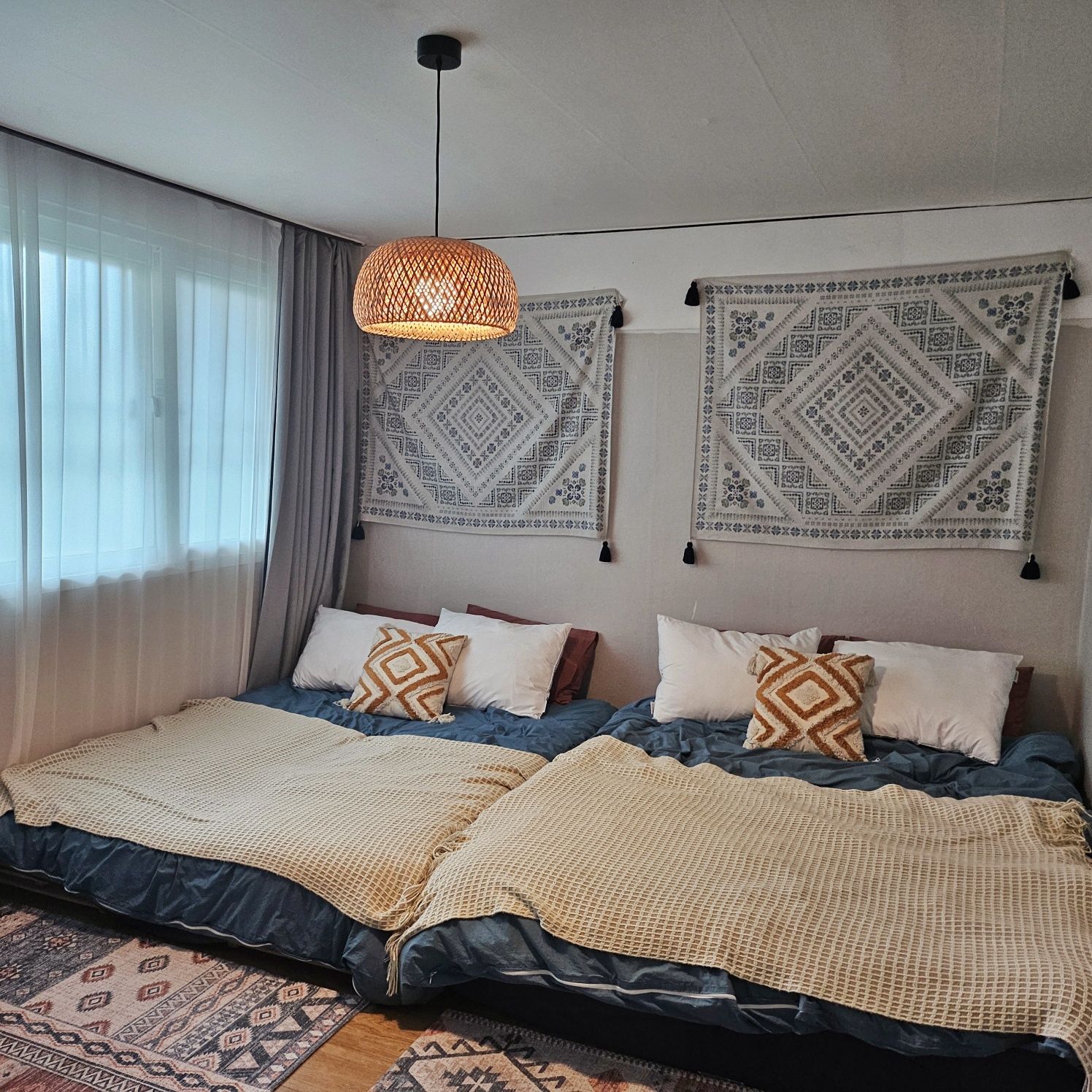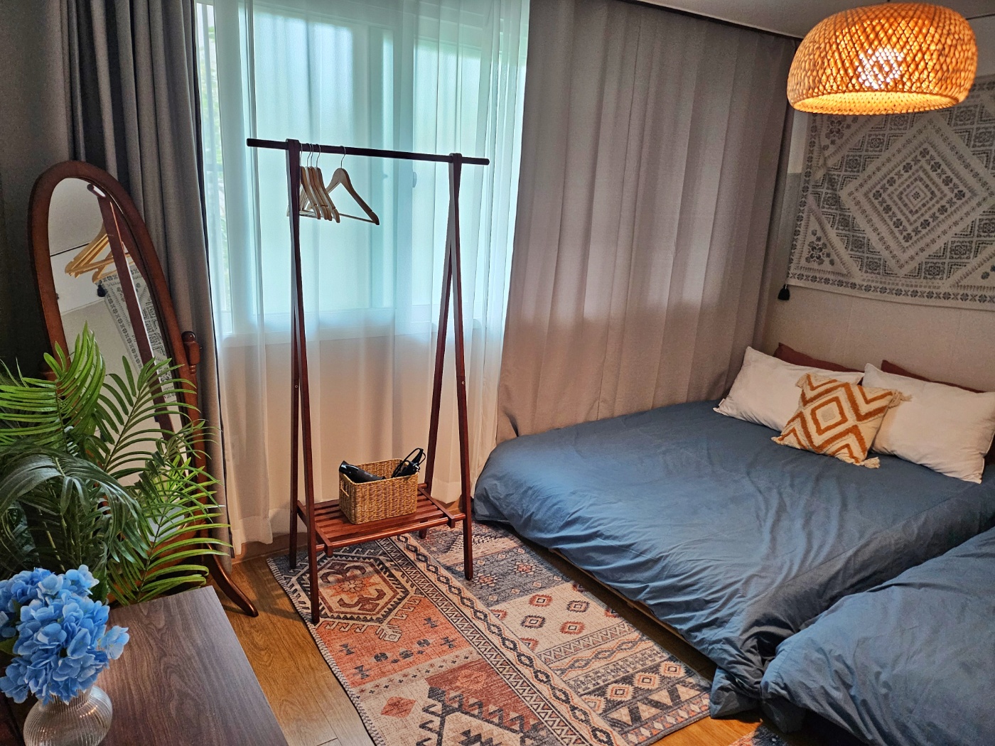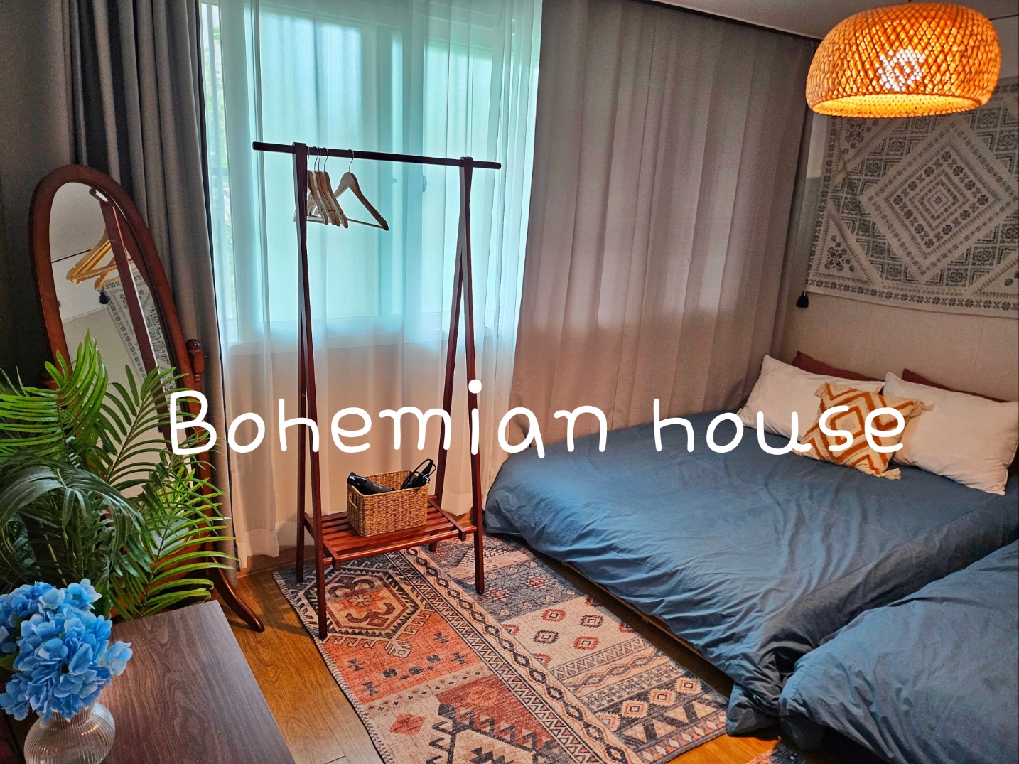 자유로운 여행가가 꾸민 보헤미안풍의 이국적이고 아늑한 숙소를 컨셉으로 하여 4인이 편안하게 머물기 좋은 넓은 투룸입니다.