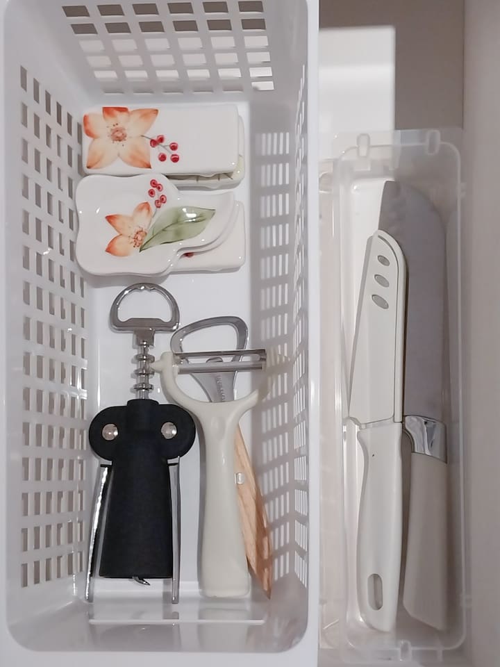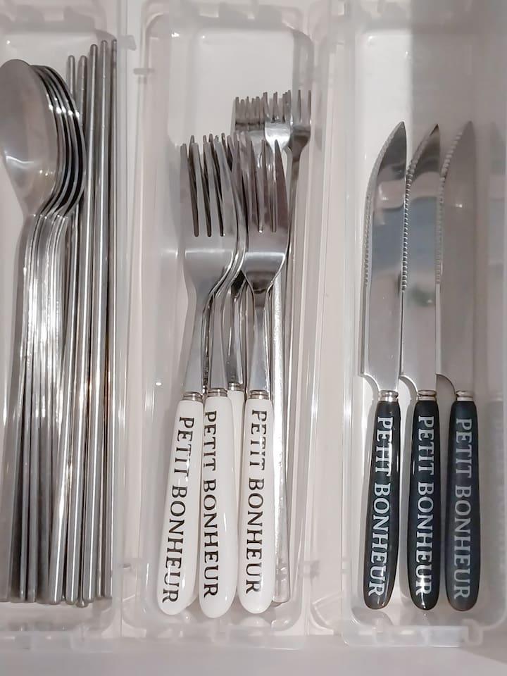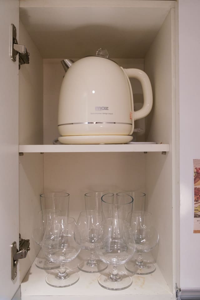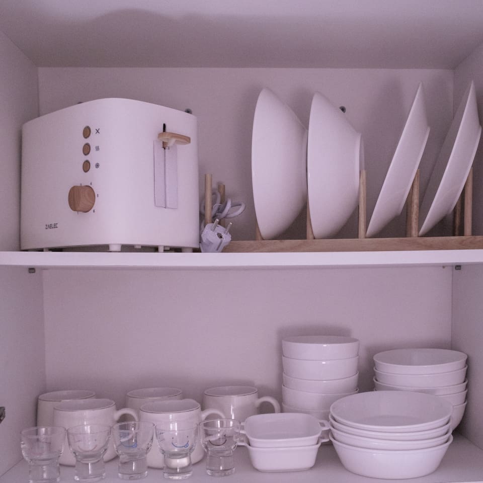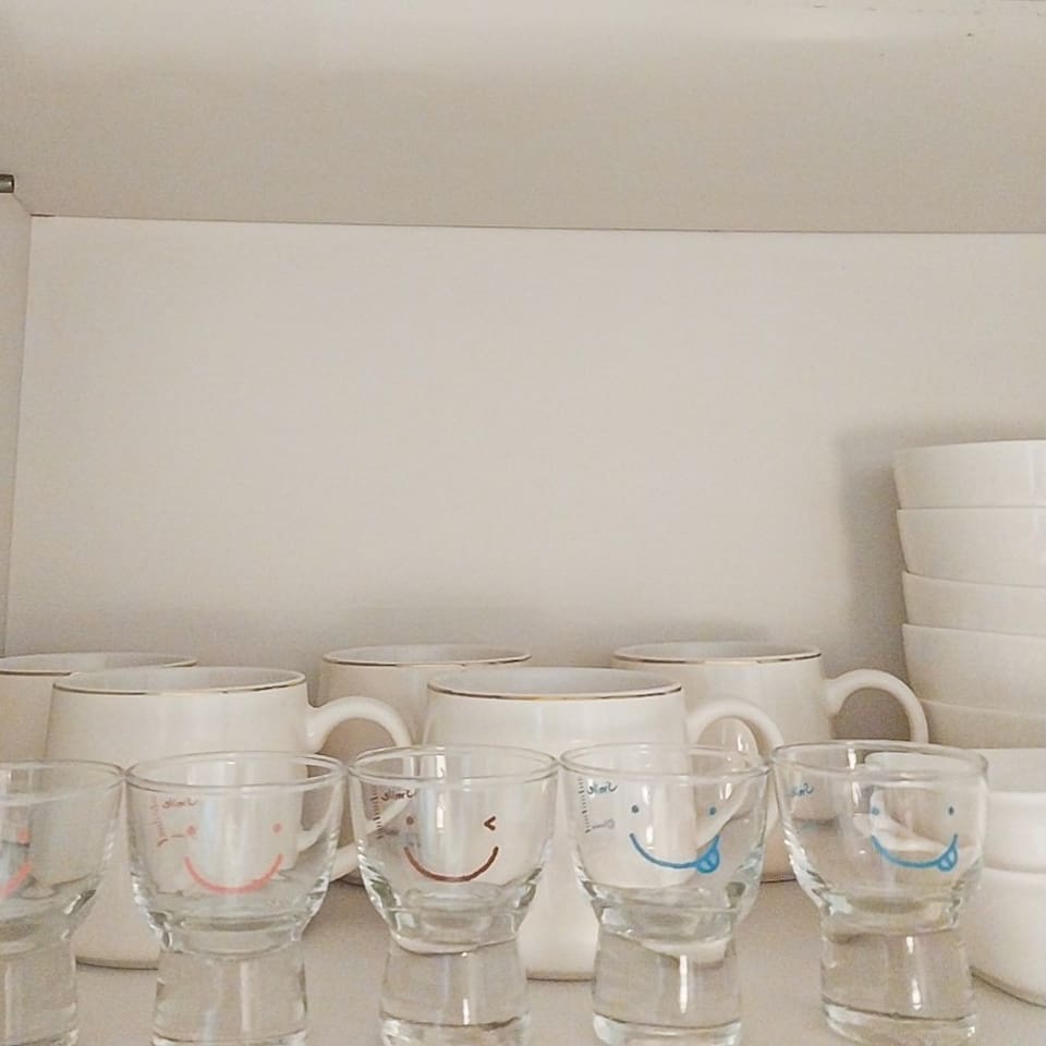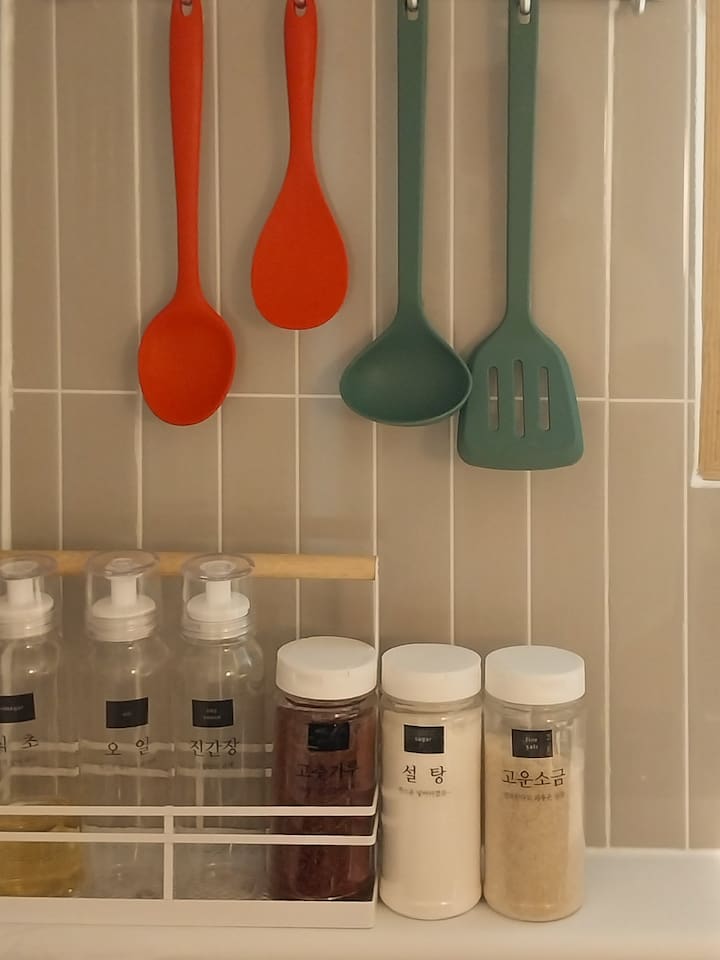 ❣️ Various Cooking Utensils: Tableware, pots, frying pan, cups (wine glasses, soju glasses), condiments (salt, sugar, red pepper flakes, oil, soy sauce, vinegar)