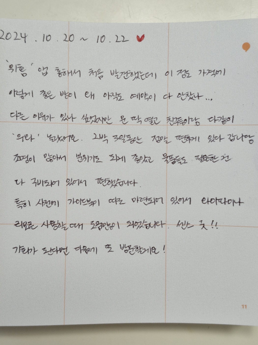 ํ์ ๋ฌธ์๋ํ๊ณ ํธ์ํ ๊ณณ์์ ํ๋ฃจ ์๋ฐ ์ํ์ต๋๋ค ์์น๊ฐ ๋๋ฌด ์ข์์ ์ด ๊ทผ์ฒ ๋ค์์ค๋ฉด ์ฌ๊ธฐ๋ก ์๋ฐํด์ผ๊ฒ ์ด์~Nov 2025 -