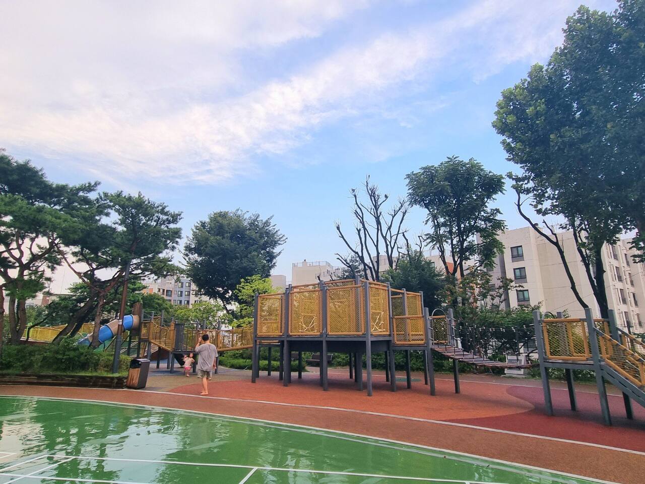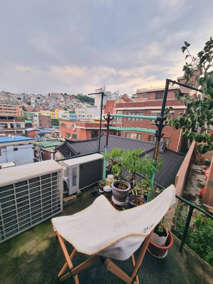 건물에 도착하여 7개의 계단을 내려가는 반지하에 있지만, 지대가 높아서 앞집의 2층 높이에 해당됩니다. 높은 지대에서 바라보는 동네의 뷰는 아주 멋집니다.