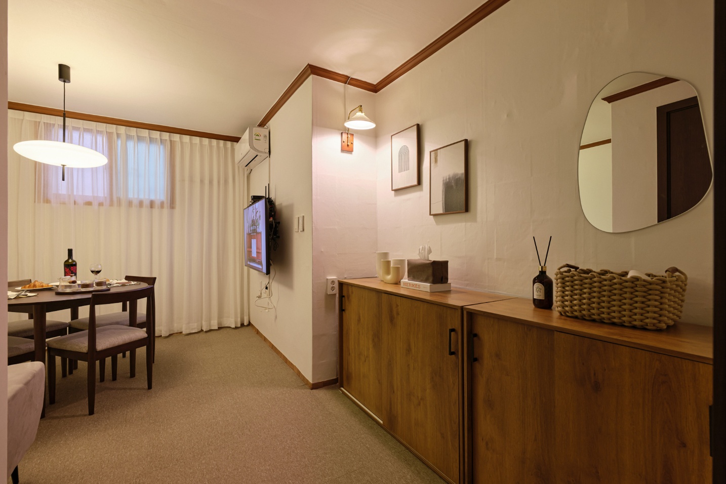 This is Mapo [Seongsan Stay], which opened in April 2024. It is a great place to stay in Seongsan-dong, adjacent to Hongdae and Mangwon-dong, making it perfect for sightseeing! Hidden photo spot [Seongmisan] It is located in a residential area below, so it is relatively quiet. It has facilities where you can stay comfortably in a sentimental and sophisticated style. โป No entry for people other than those who have made a reservation (even simple visits are not allowed) โป If caught, additional charges will be applied to people - Outdoor entrance cap security camera - Welcome water (1 bottle per person per reservation), coffee mix (mix, black) - Women's cosmetics (toner, lotion), hair essence, cleansing foam, cotton pads, cotton swabs, toothpaste, cell phone charger, multi-adapter, ironing board are provided - Board games (Halli Galli, Uno, Lumikub) - All bedding is changed before the guest checks in. * There are many restaurants and cafes within 5 minutes of the accommodation. * Mangwon Market, Mangridan-gil 10-minute walk. * Hongdae, Hapjeong, Yeonam-dong, World Cup Stadium 23-minute walk, 6-8 minutes by car. * 22 minutes by car from Gimpo Airport, 50 minutes by airport bus. * 1 hour by airport bus from Incheon Airport. 1 hour and 20 minutes by subway Instagram @sungsanstay Accommodation โถ Capacity: 2 people / Up to 4 people (1 queen bed + 1 sofa bed) Guest-available space/facilities โถ Accommodation basic facilities - Space: Separate bedroom, living room, and kitchen - Furniture: Queen bed, sofa bed, hotel-style bedding, 2-person sofa, 4-person table and chairs, side table, lighting - Appliances: 50-inch TV, 2 air conditioners, air purifier, dehumidifier, refrigerator (separate freezer and refrigerator), microwave, drum washing machine, induction, hair dryer, curling iron, hand steam iron - Kitchen: 4-person tableware set, wine glasses, mugs, tea cups, beer glasses, soju glasses, pots, frying pans, knives & cutting boards, cooking utensils, wine opener, kitchen detergent, disposable dishtowels & scrubbers, rubber gloves, seasonings (salt, sugar, pepper, oil) - Bathroom: Towels, shampoo, treatment, body wash, hand wash, toilet paper, Cleansing foam, cotton swabs, cotton pads, toothpaste - Laundry: Laundry detergent, fabric softener, clothes rack - Other: Vacuum cleaner, fabric deodorizer, multi-tap, multi-adapter, dust removal tape, cell phone charger, wet tissues, first aid kit, indoor slippers, hangers โถ High-speed Wi-Fi, Netflix, YouTube TV viewing available โถ When using public transportation: 9-minute walk from Mangwon Station on Line 6 โถ Nearby tourist attractions: Hongdae, Hapjeong Cafe Street, Mangwon Market, Mangwon Hangang Park, Sangam World Cup Stadium, World Cup Park, Sky Park, etc. โถ Nearby amenities: Convenience stores (CU, GS, 7-Eleven, E-Mart 24) 3-4-minute walk away Large supermarkets, restaurants, cafes, hospitals, banks, libraries, parks Other precautions โถ Check-in: 4:00 PM, Check-out: 12:00 PM โถ For the safety of guests, the password is changed frequently and will be announced on the day of check-in โถ Please be mindful of noise for the neighbors after 10:00 PM โถ For the next guest, do not eat smelly foods (grilled fish, pork belly, etc.) Please avoid grilled foods, seafood, etc. โถ Additional people and pets that have not been agreed upon in advance are not allowed to enter โถ Please keep the accommodation clean and be sure to wash the dishes and separate the trash when checking out โถ Please turn off the boiler, air conditioner, and lights when going out and checking out โปโปโปโป The guest will be charged for damage to the accommodation's furniture (furniture, electronic products, tableware), wallpaper, tiles, and floors, contamination of bedding, curtains, and rugs, excessive electricity and water usage, and clogging of the sink and toilet due to food waste and other trash. โป No smoking indoors โป No pets allowed โป No parties (no attaching wallpaper balloons, etc.) โป No dyeing in the accommodation