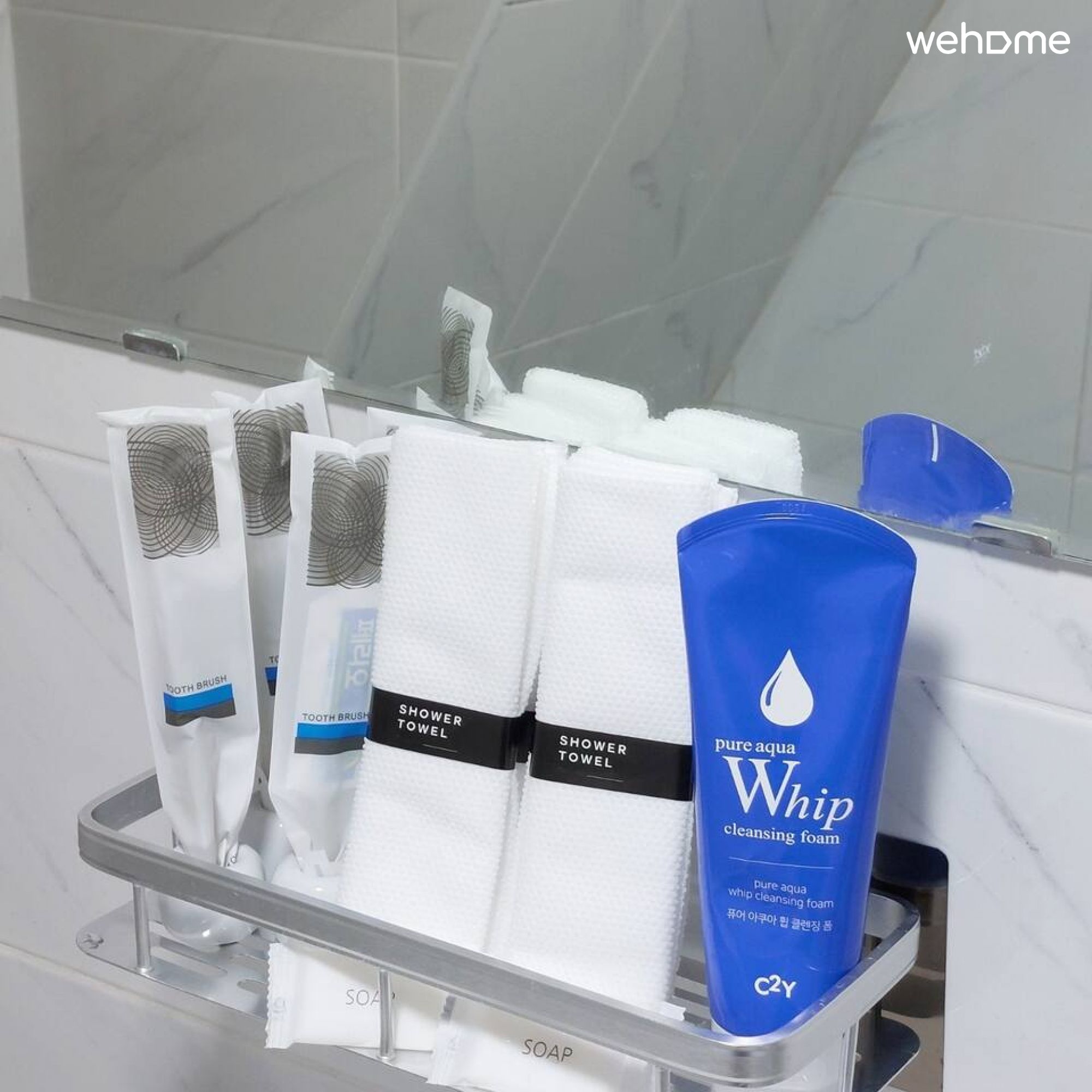 치약, 칫솔, 수건, 샴푸, 린스, 바디워시, 비누, 폼클렌징, 머리끈, 화장솜, 면봉, 빗, 드라이기, 고데기