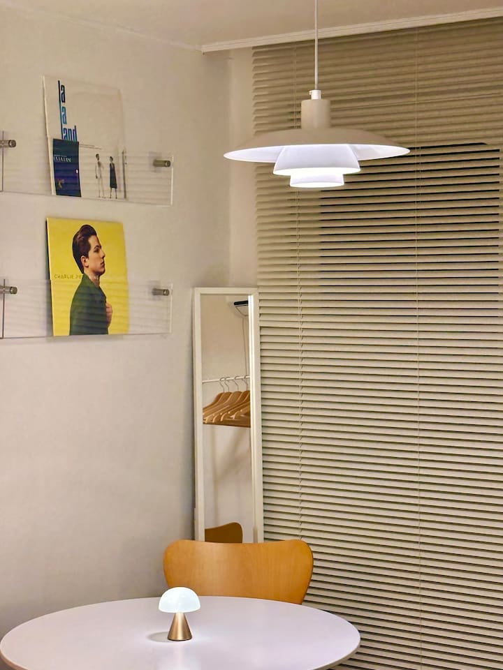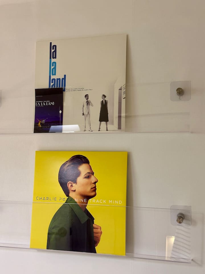 - 턴테이블과 LP가 준비되어 있습니다. 모던한 공간에서 색다른 음악을 감상해 보세요!