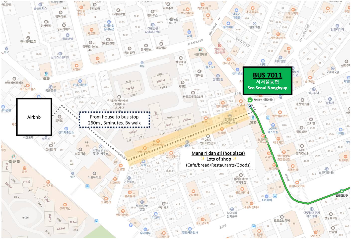 ✨ It is 700m (10 minutes walk) from Mangwon Station exit2