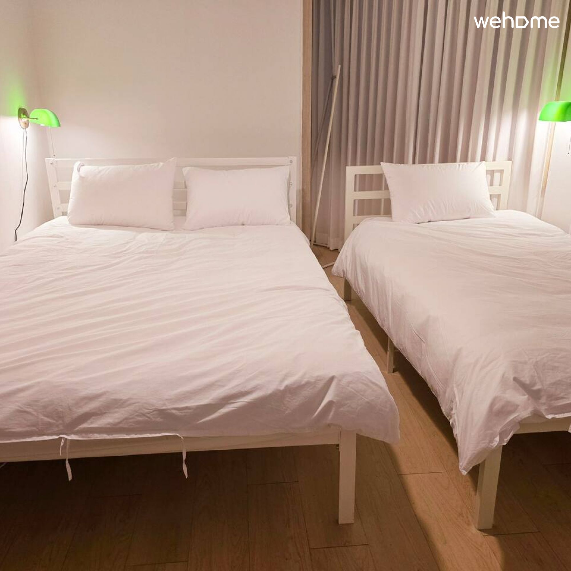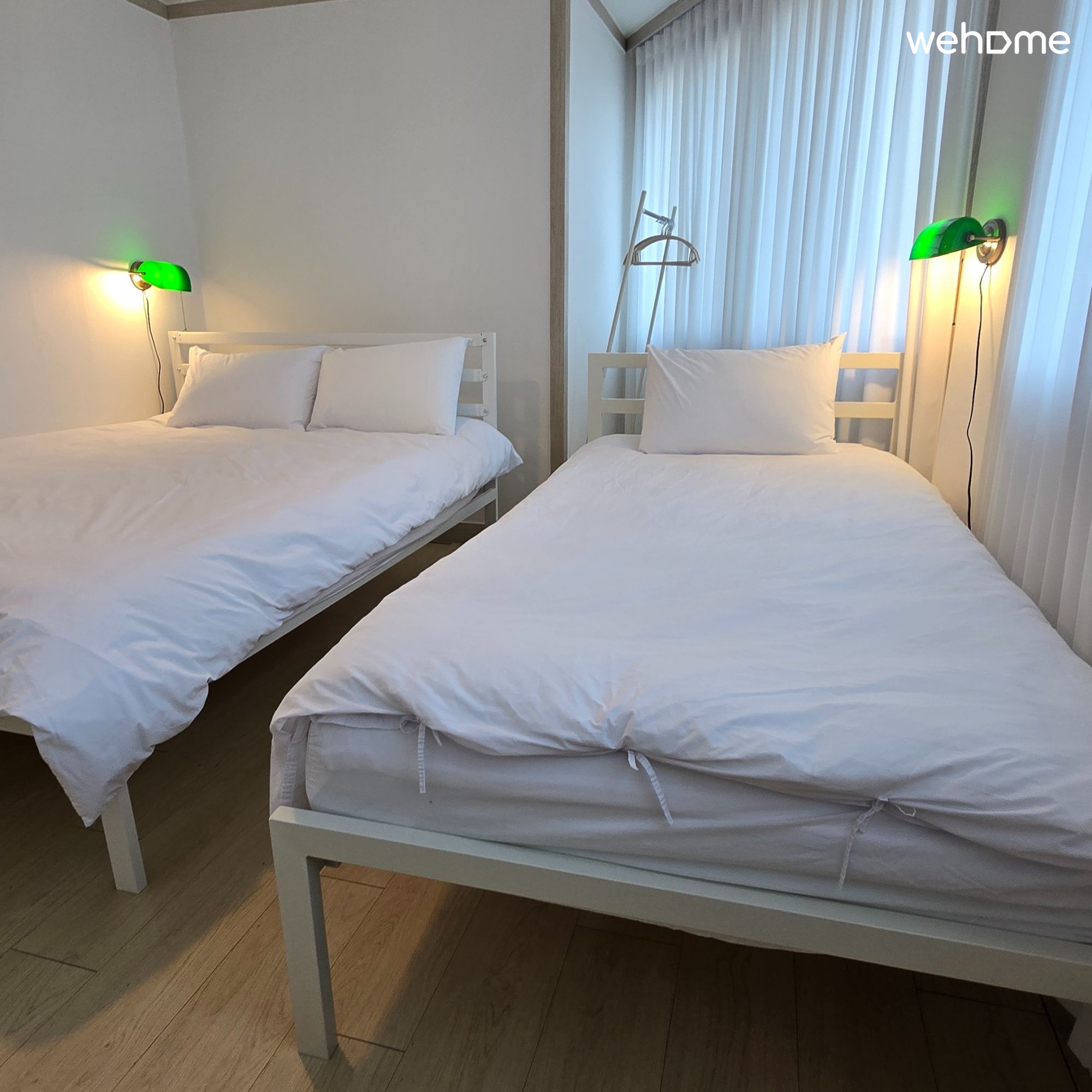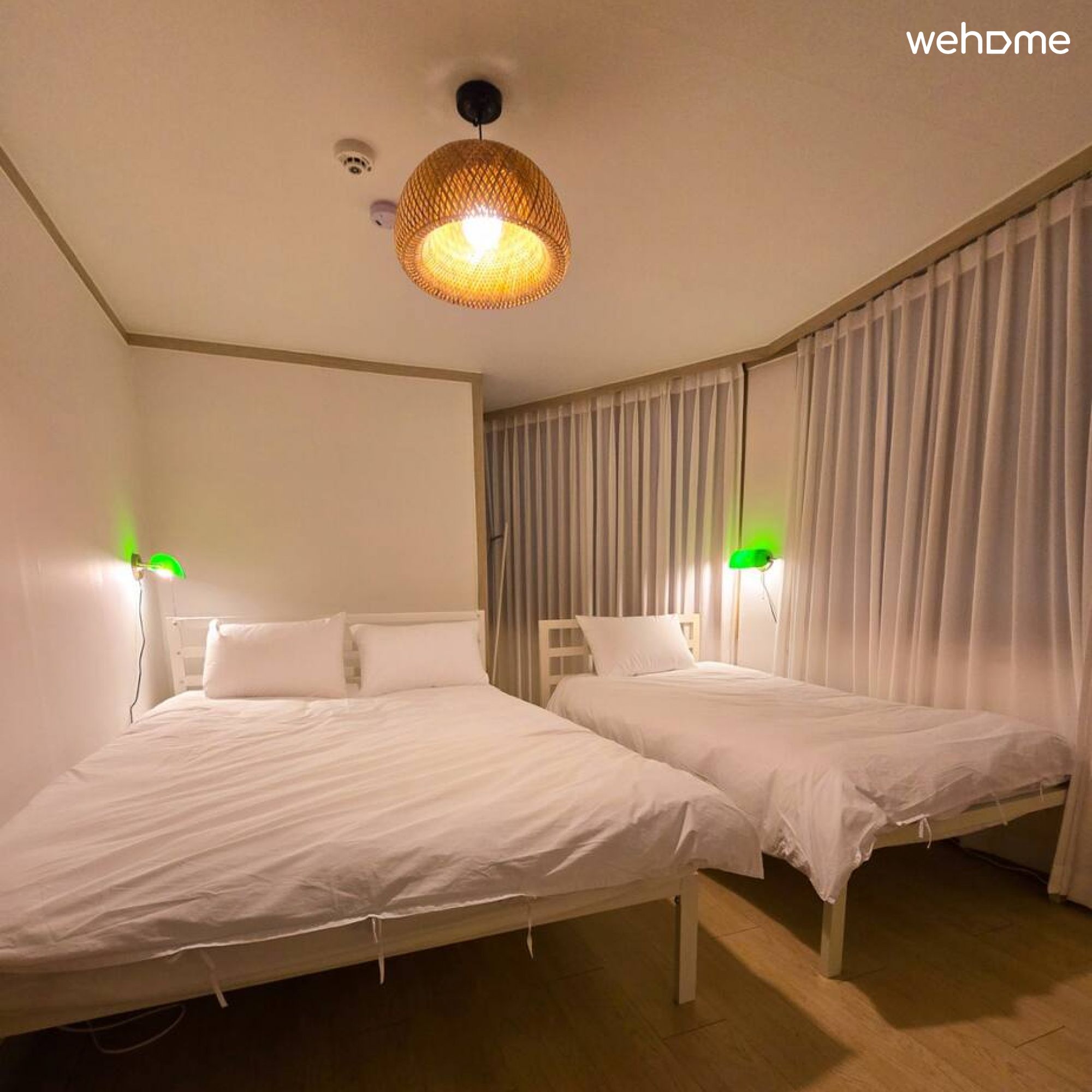 ** 침실은 2개로 두개의 섹션으로 나눠서 사용합니다. 현재는 퀸침대 2개가 있으며, 5인일 경우 싱글베드가 추가로 세팅됩니다.